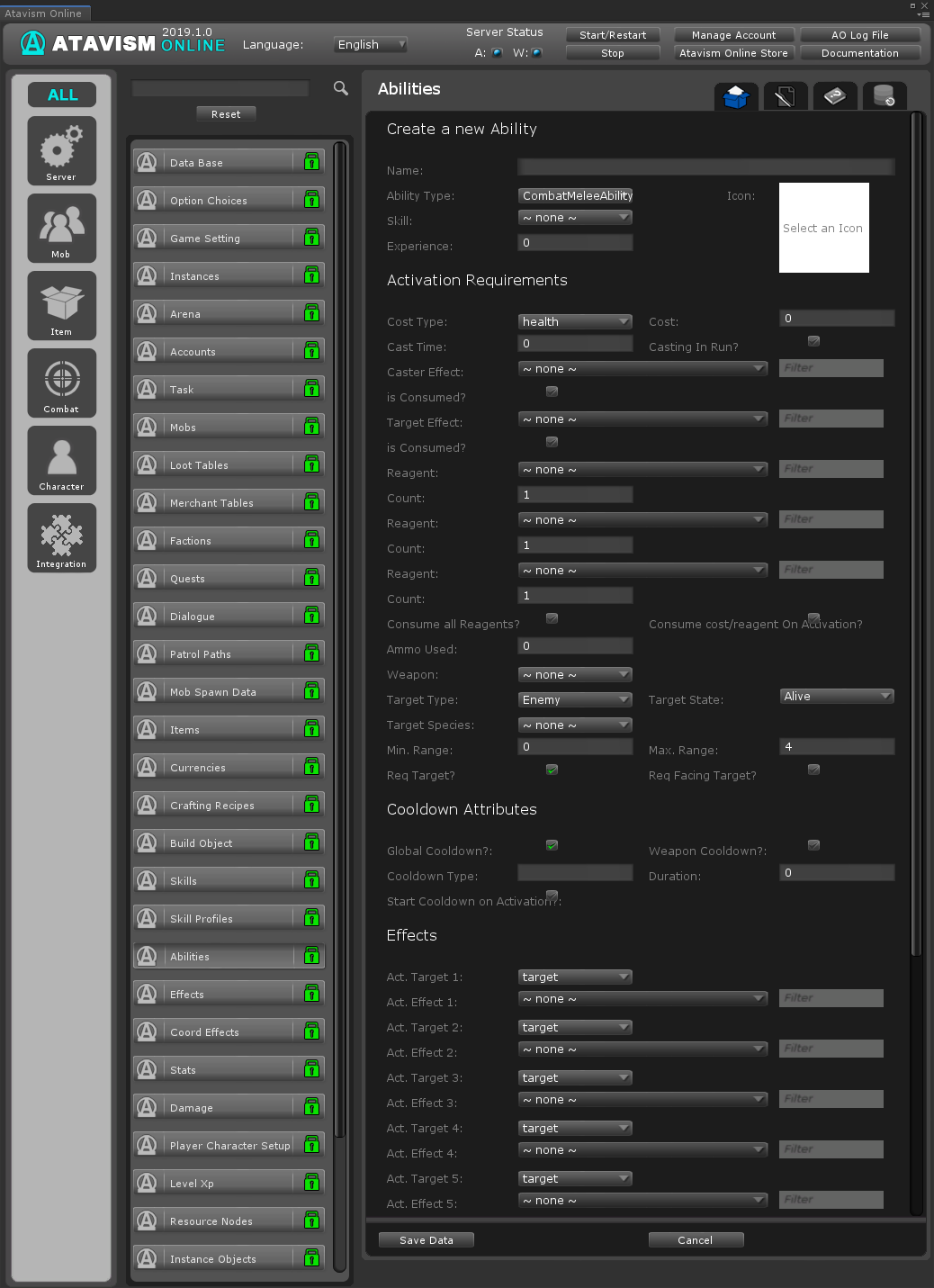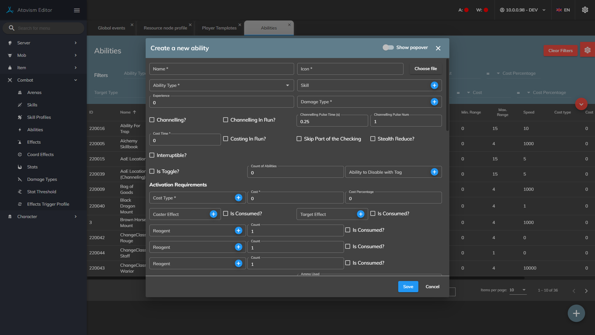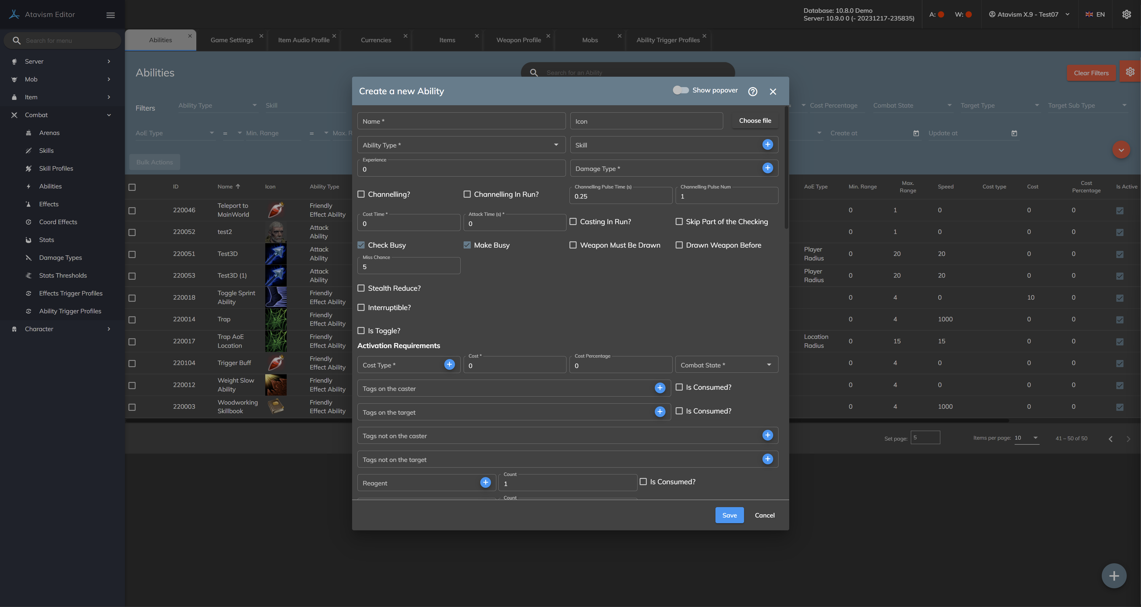 Skip part of the checking?: If enabled for this ability Ataivsm Server won’t process checks like if the ability is learned, requirements, etc.