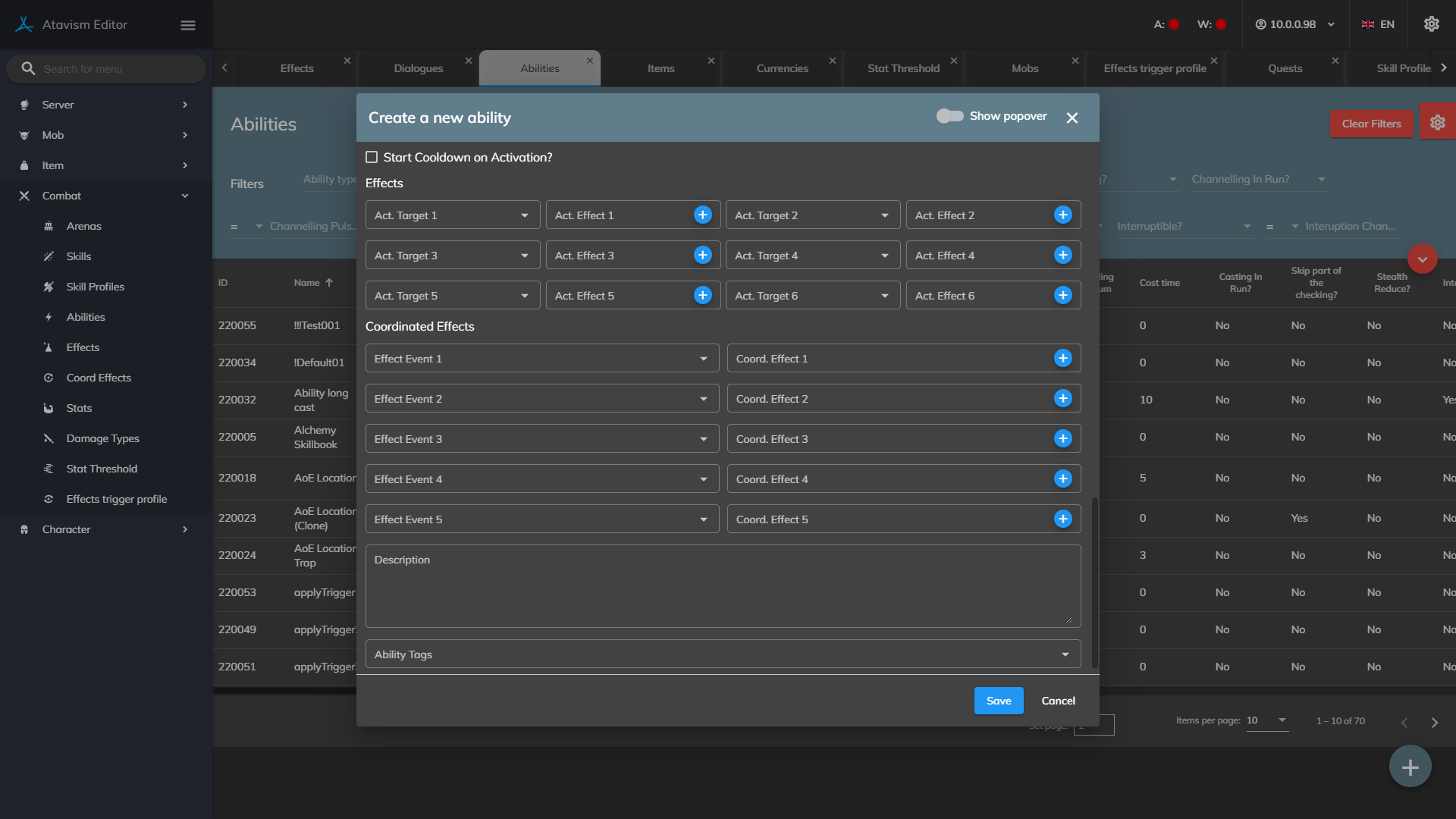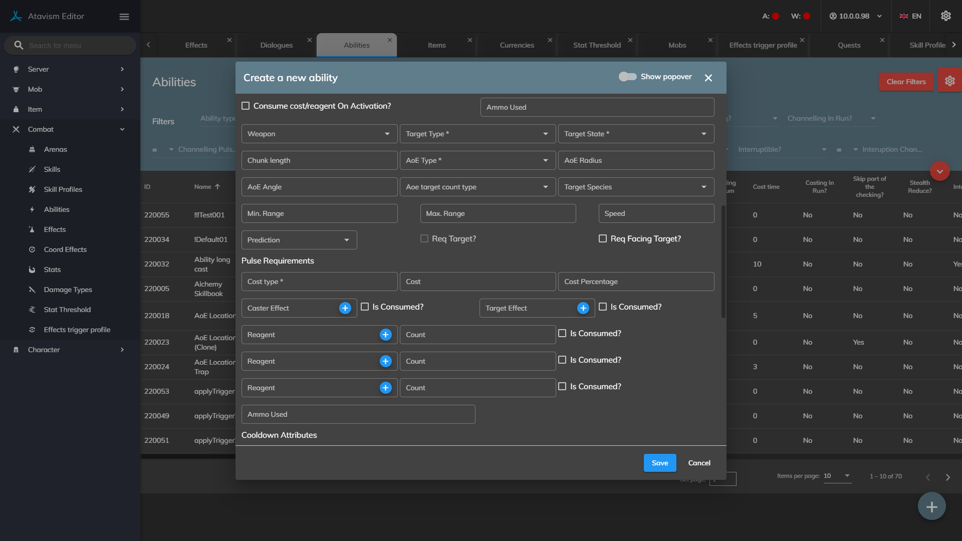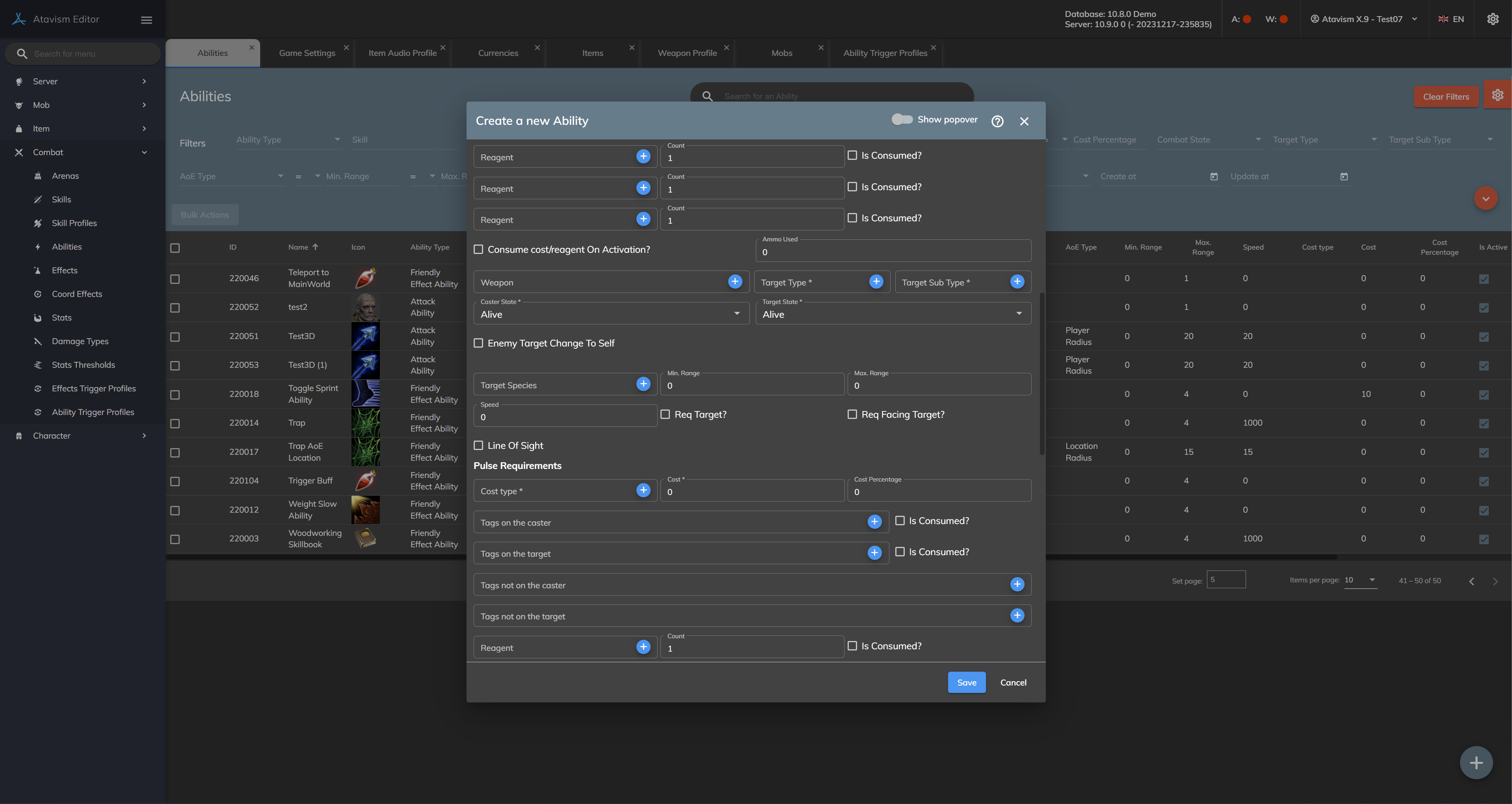 Skip part of the checking?: If enabled for this ability Ataivsm Server won’t process checks like if the ability is learned, requirements, etc.