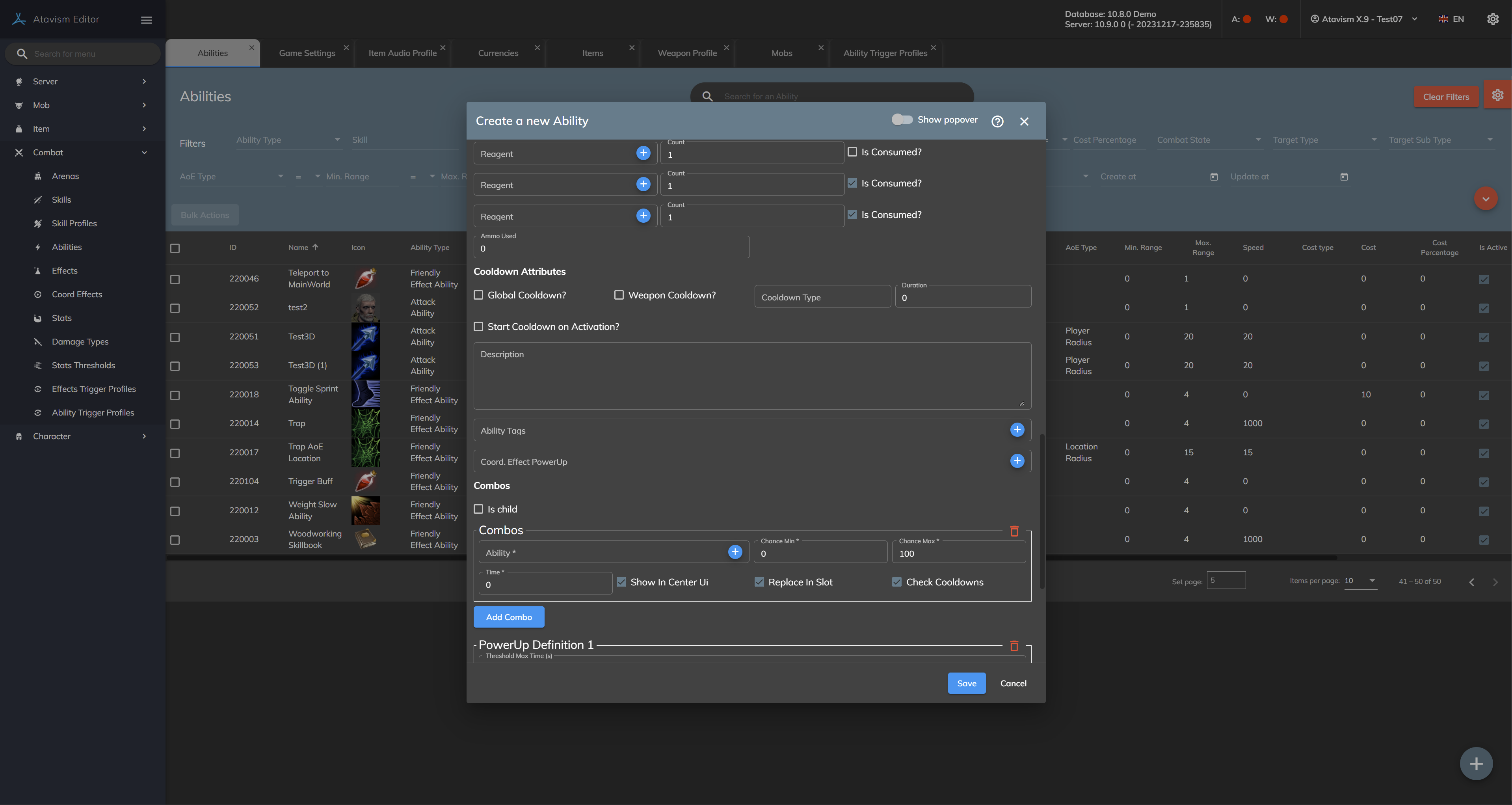 Reagents (1-3): The item the player must have to activate the Ability. If is Consumed ticked, the Item will be removed when the Ability is activated.