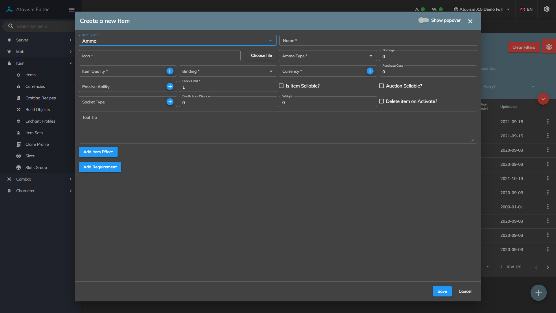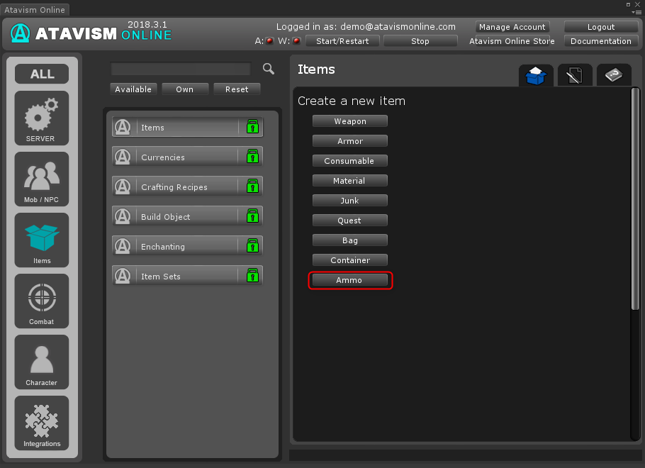 1. Create Item with Ammo type