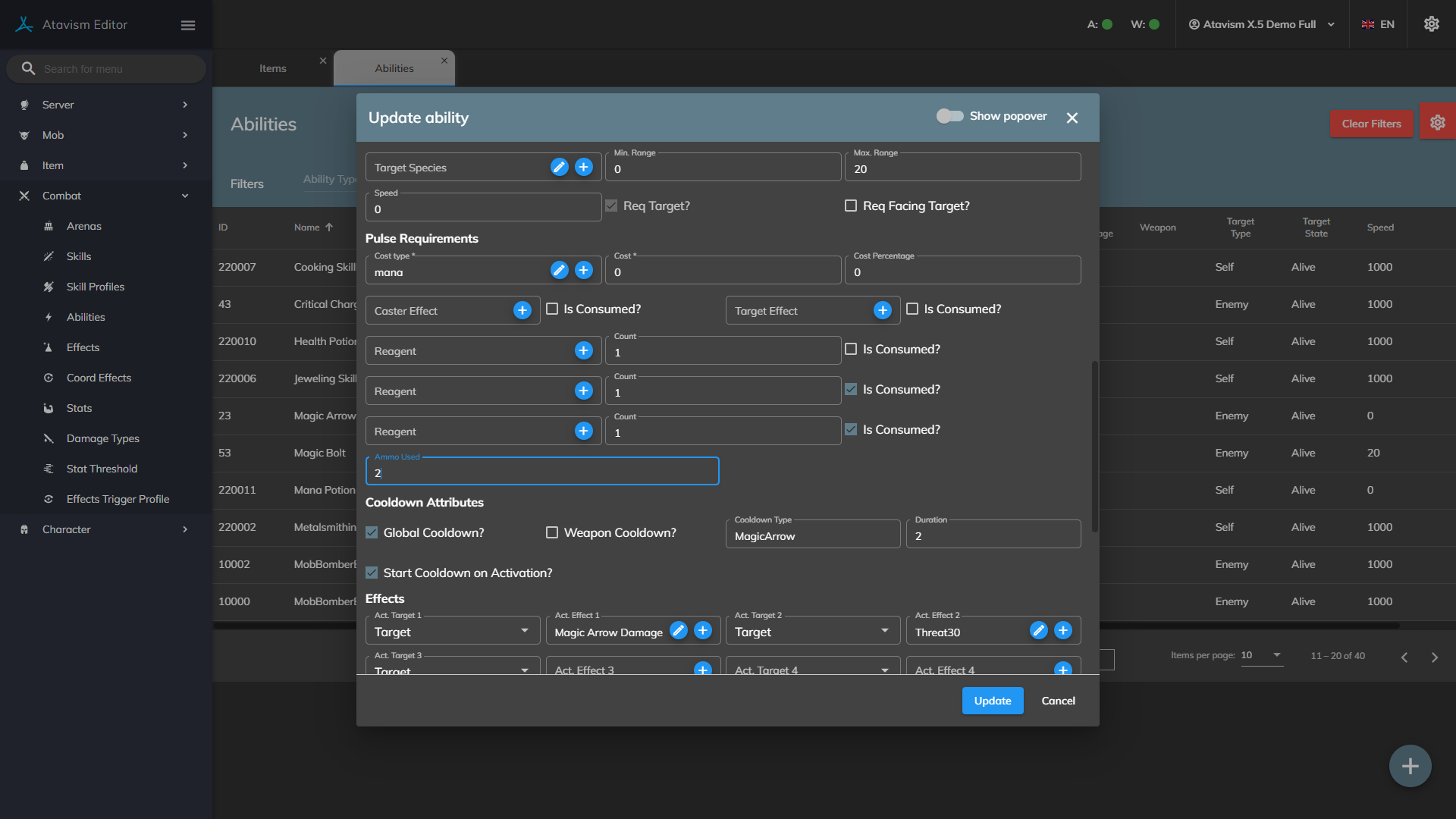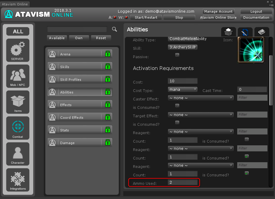 To configure Ammo that will be used by your abilities you have to follow this short guide