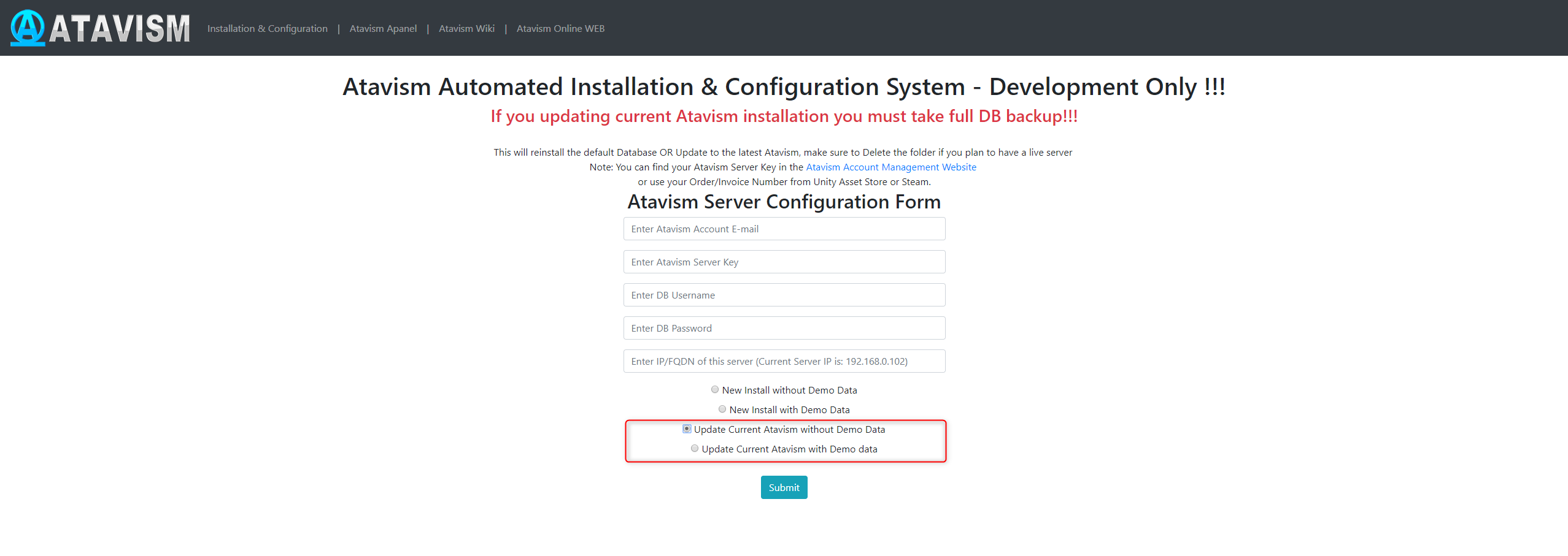 - Added option to update Atavism Core and Demo during installation on the VM with the web installer