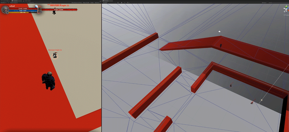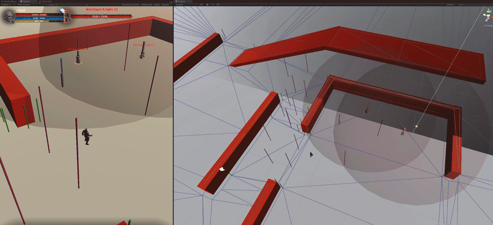 - Last implemented feature for NavMesh is NavMesh Line of Sight, so basically server will check if it’s possible to raycast from mob to player and if not then don’t’ aggro, it will give you an opportunity to hide mobs behind big rocks and they won’t aggro until player will reveal himself around the corner and raycast from the mob to player will hit without NavMesh obstacle on the way