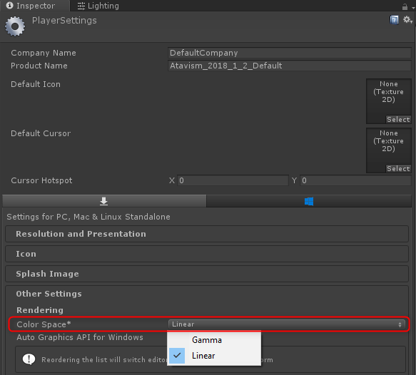 In the Inspector you should see some options and among them, you should see Color Space option, set it to Linear as on the screen below.