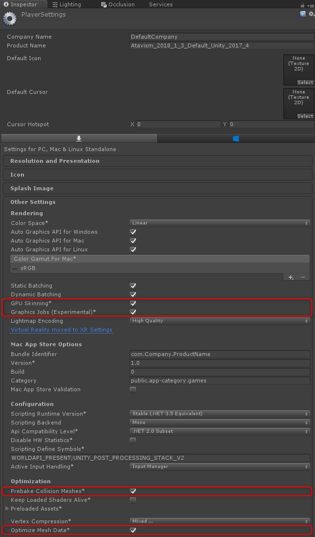 5. For performance reasons you may also want to enable some optimization in the Edit->Project Settings->Player