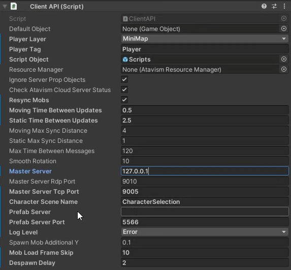 Step 9: Open Login scene which is located in Assets -> Dragonsan -> Scenes -> Login, and set your Master Serer to the IP or hostname where your Atavism server is installed.