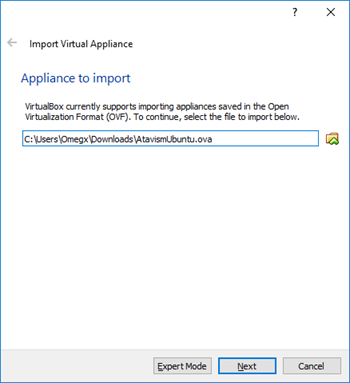 In this window, you will need to select the OVA file that you downloaded from APanel.