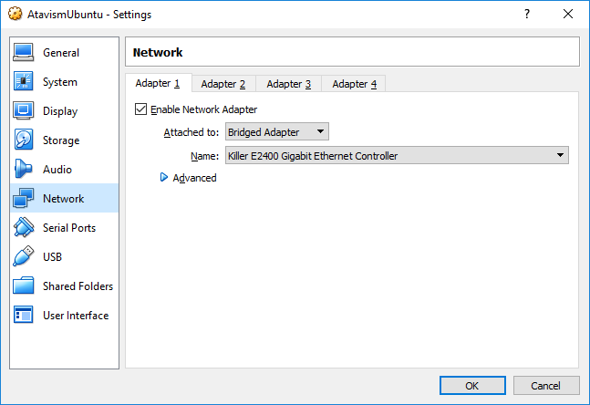 After you change network card settings you can upload Atavism_Server.zip to this VM.