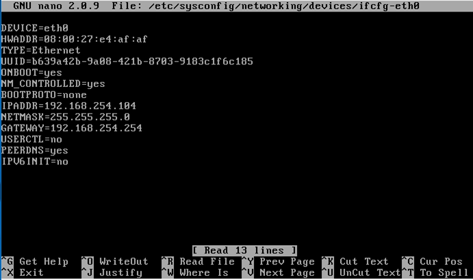 nano /etc/sysconfig/networking/devices/ifcfg-eth0