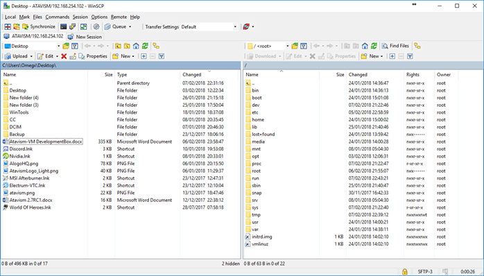 After you log in you should upload atavism_server_xxxx.zip into the default directory /root/: