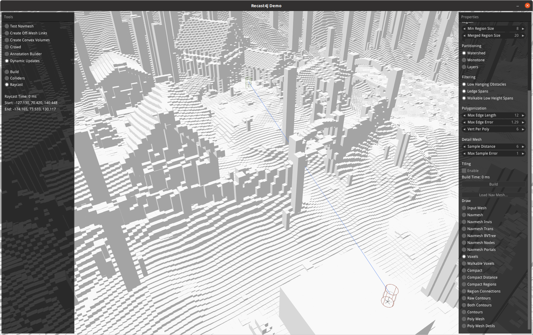 PRIVATE_INVITE_TIMEOUT – Defines how long the invitation will be valid – Integer – Default: 60 seconds - Navmesh Pathfinding: Added option to use voxelized map representation on the server to generate navmesh in realtime with additional objects. If the Atavism server won’t find the new file, it will try to load the old static navmesh graph, and if it won’t be found, then not pathfinding will be used at all. There is DYNAMIC_NAVMESH_UPDATED_INTERVAL – Defines how often the navmesh based on voxelized map and buildings will be recalculated – Integer – Default: 1000 milliseconds. Also for future troubleshooting, we added the DYNAMIC_NAVMESH_UPDATE_SAVE parameter that defines if every generated navmesh on the server should be saved in a separate file so you could visualize it in the Recast4j Demo application – Boolean – Default: false