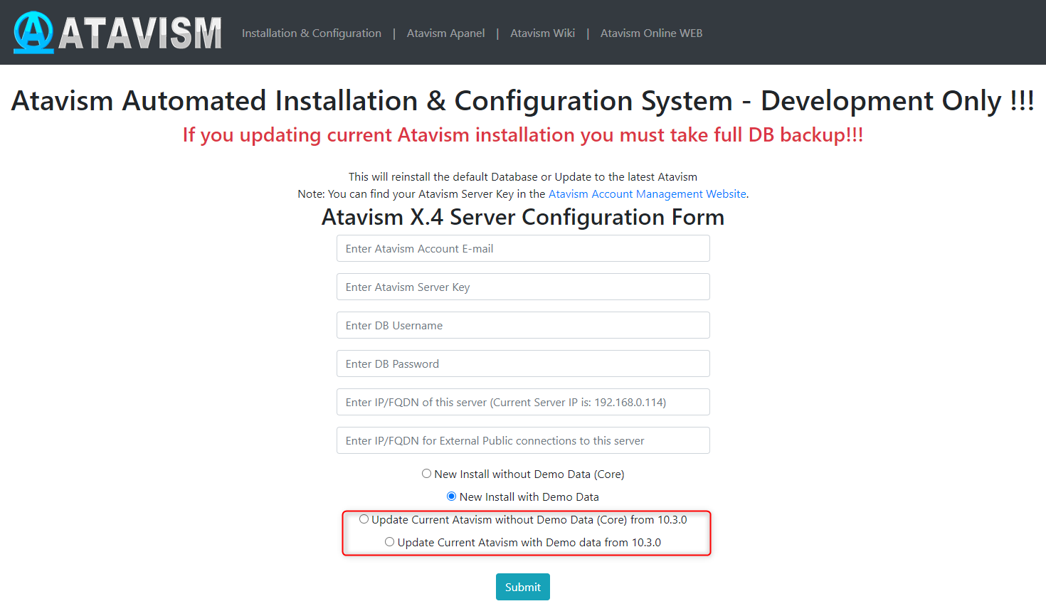 In order to install Atavism you can choose one of three types of installation: