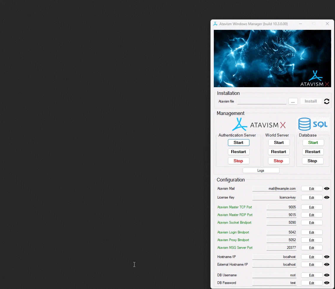 Step 13: Download the updated file for Atavism Windows Manager from apane, and replace it. Remember to stop it before.