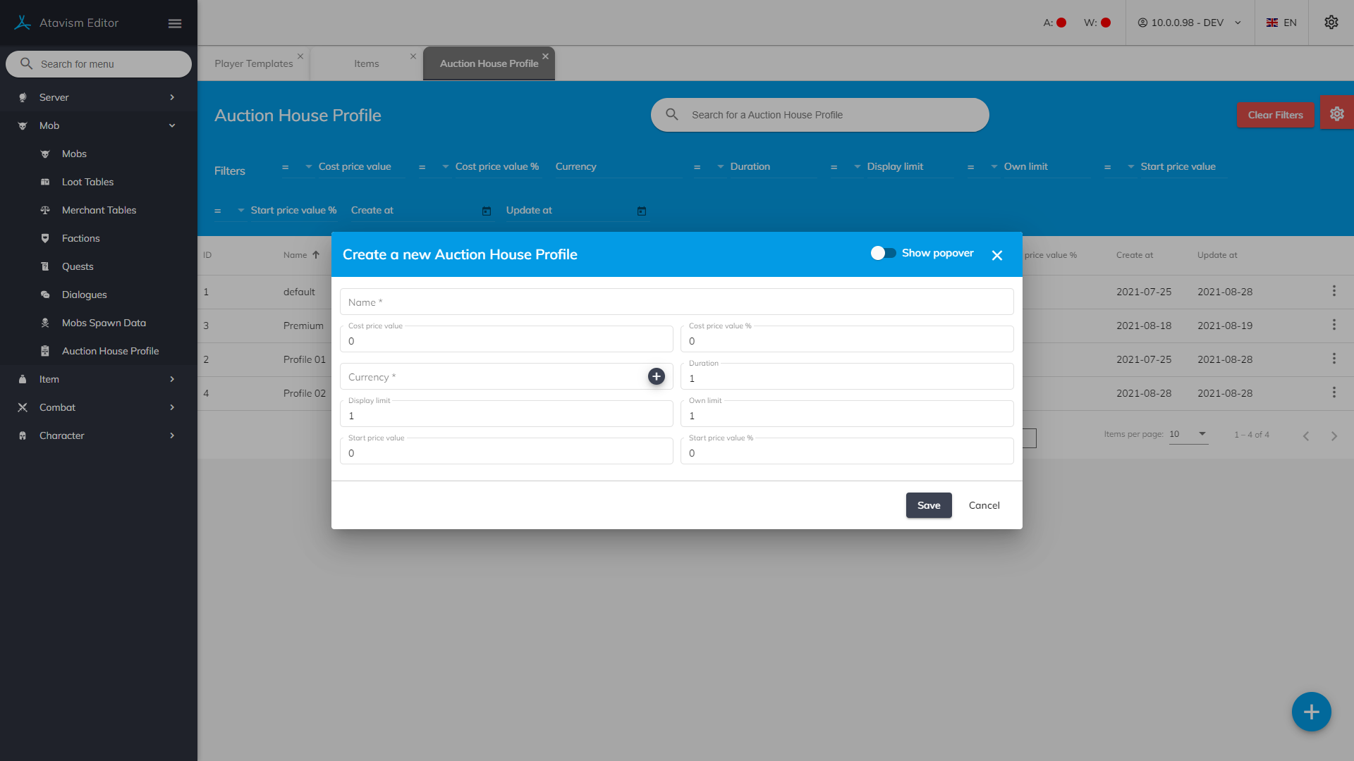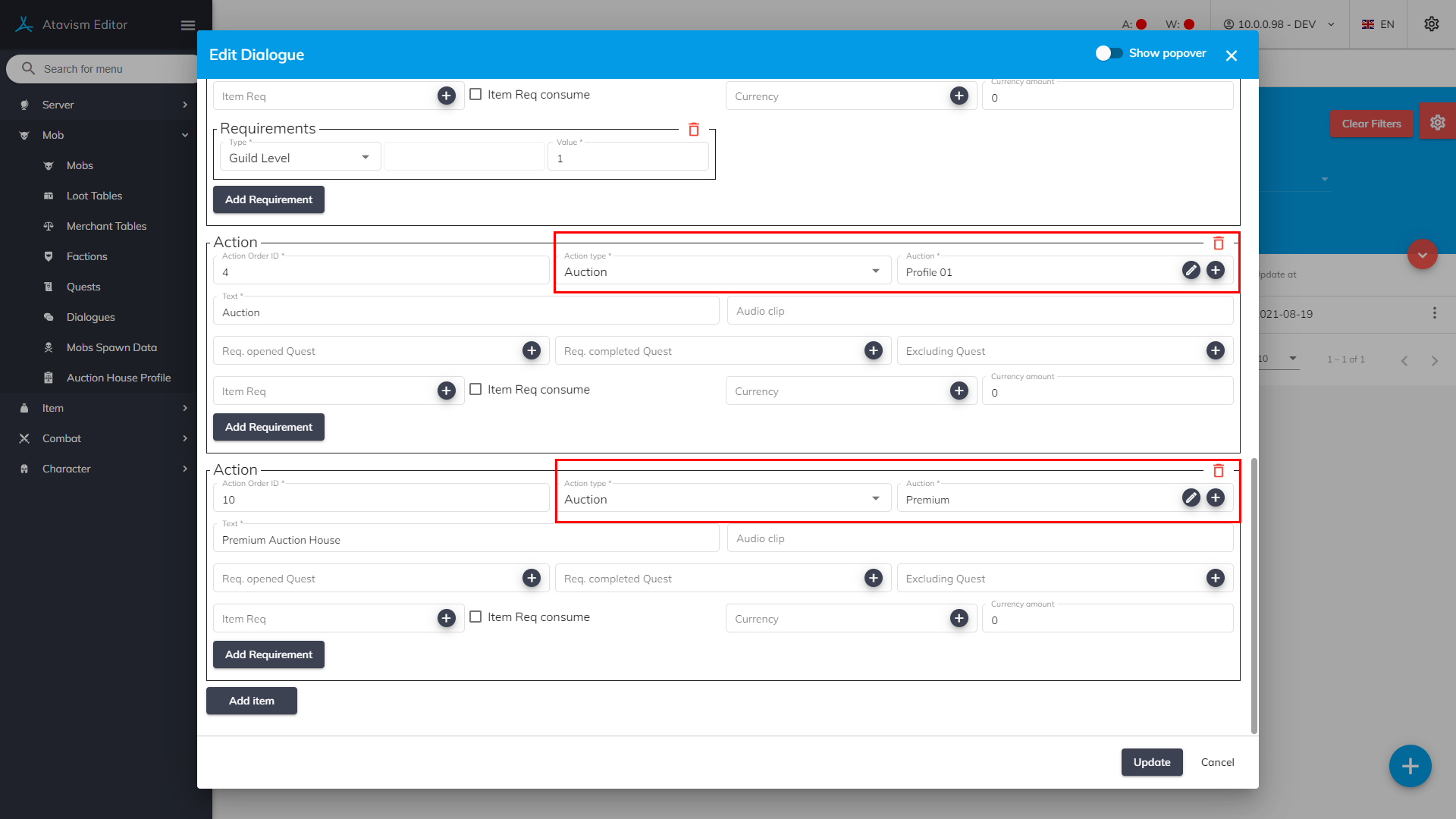 After that Auction House can be used in the Dialogue Module where profiles can be selected to provide locally working Auction Houses.