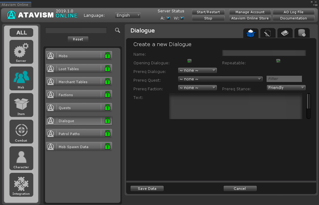 - Merchant – option to open Merchant Panel with defined Merchant Loot Table