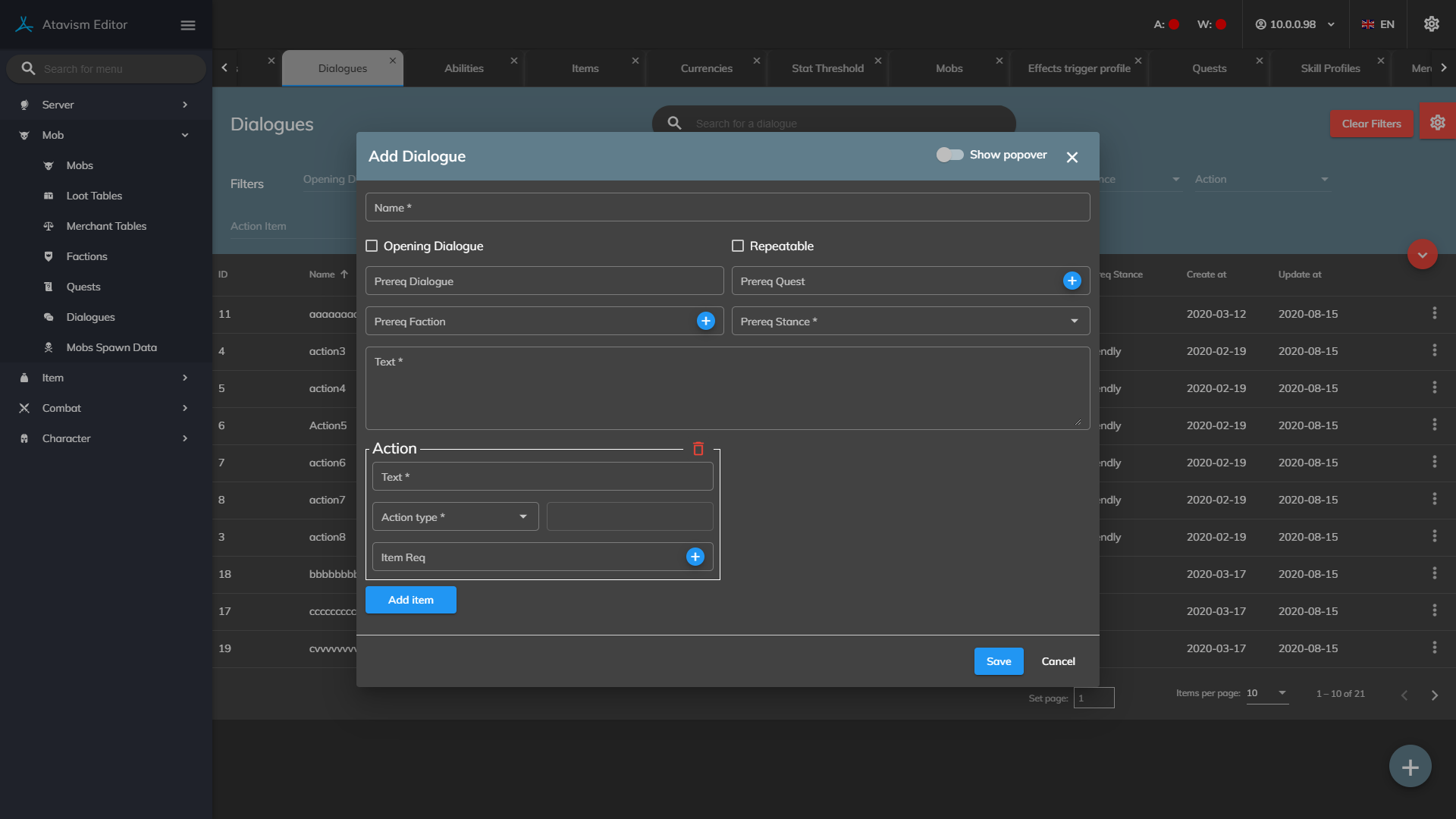 Name: The name of the Dialogue. Depending on the Dialogue, this may appear in the list of options from an NPC