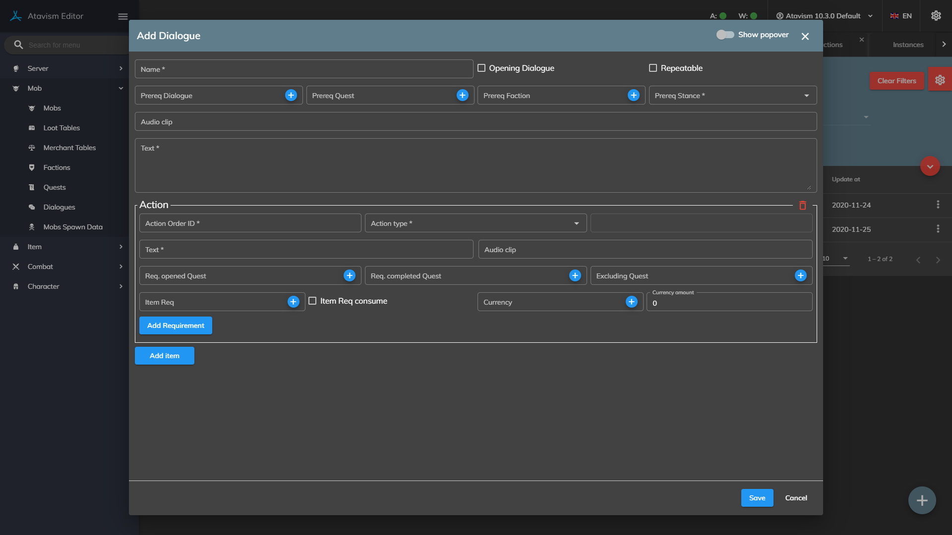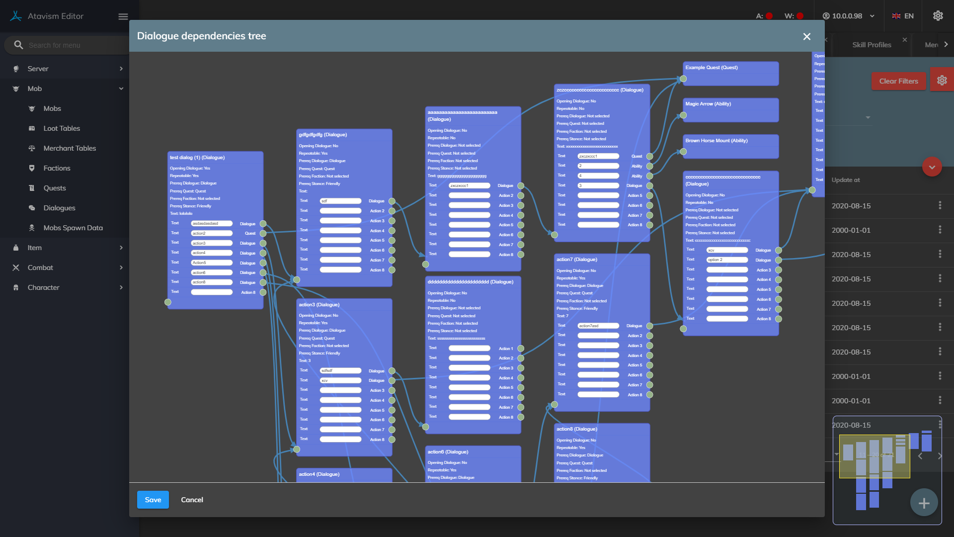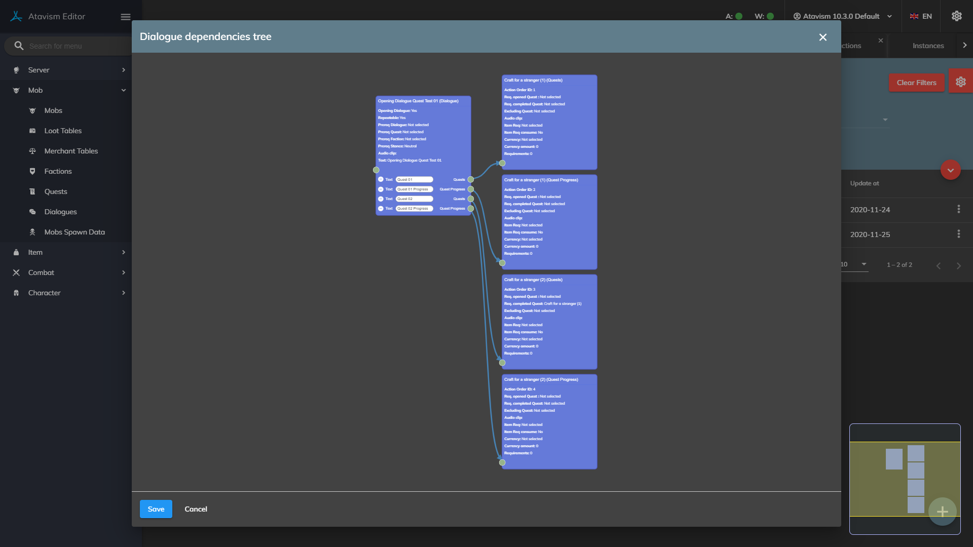 Dialogues have the new canvas mode which allows you to visually design your dialogue tree.