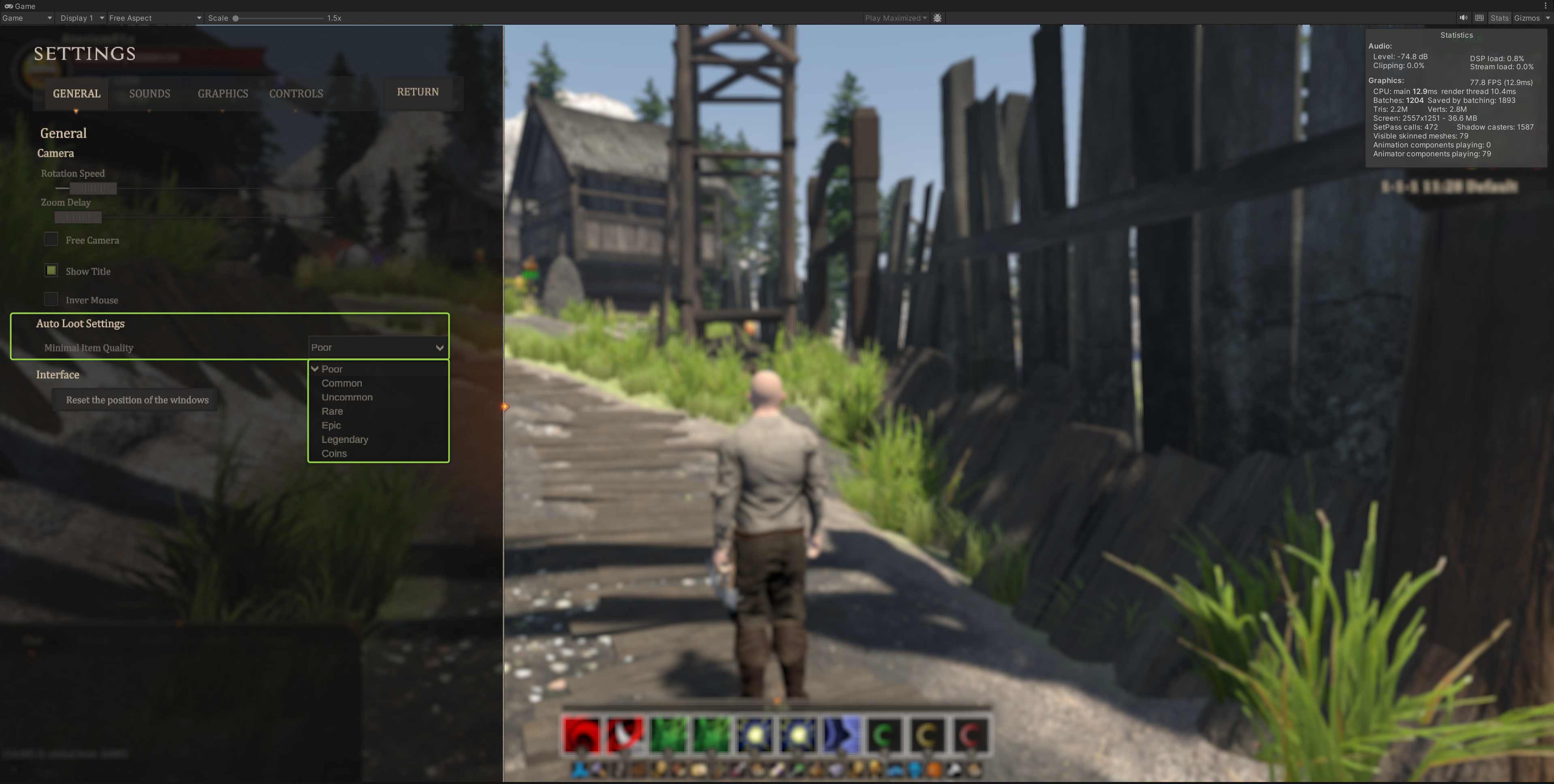 Also, in the game, you can set what quality of items will be looted automatically. Just open game settings (by default by pressing the ESC button), General tab, and use dropdown list.