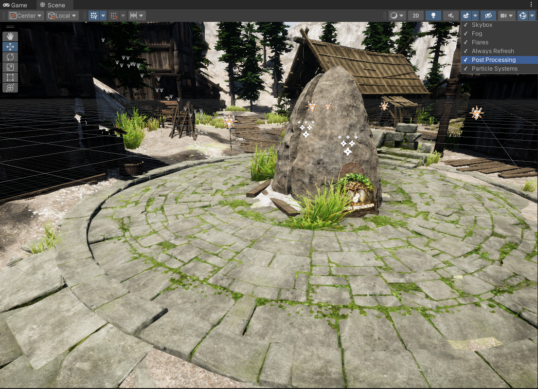Then you need to find your MainCamera game object in the scene, add the Post-process Volument component to it, and select Layer to the previously created PostProcessing one. You should immediately see the result in the scene view.