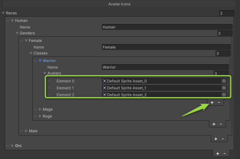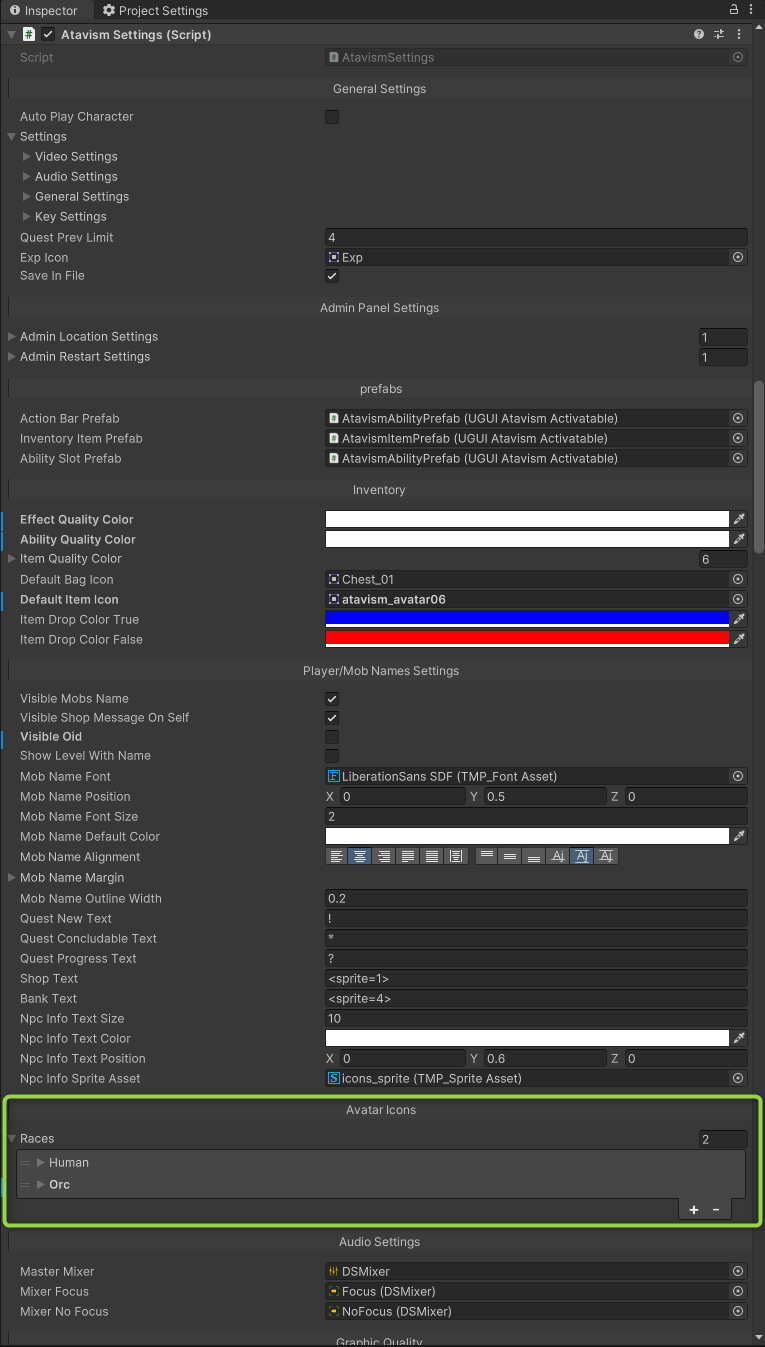 Find the Atavism Settings component in the Inspector window and within it, you will see the Avatar Icons section