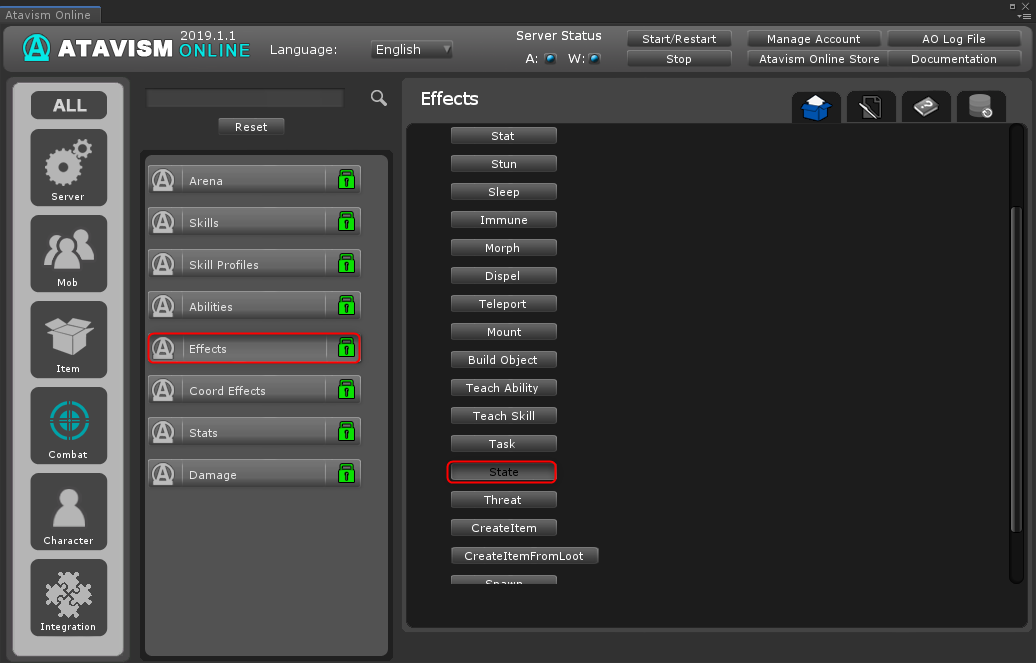 In most cases, if you are using the water region you will want to have a breath stat which will go down while the player is within the water region. Open Atavism Editor and define a new stat in the stat plugin.