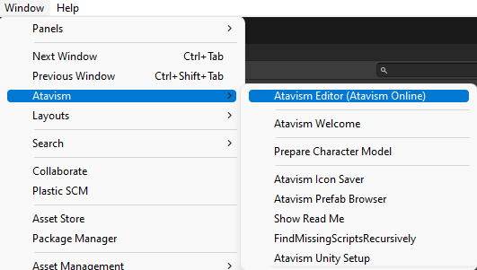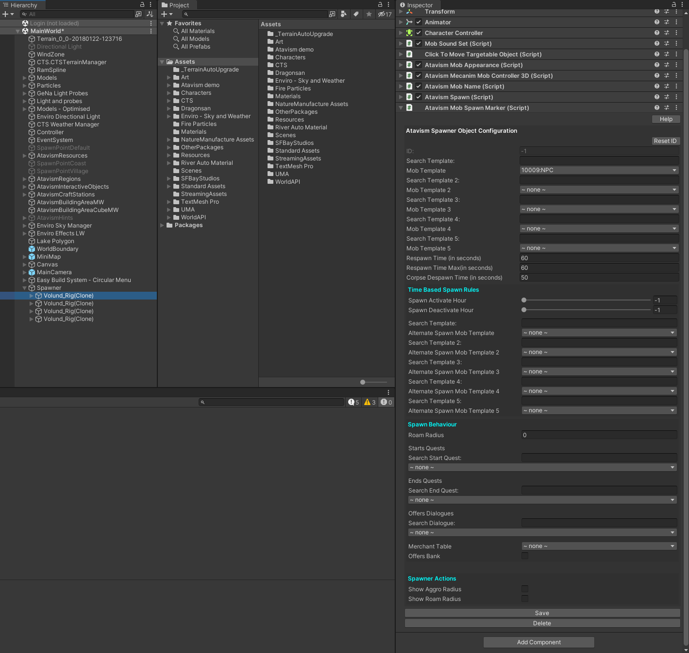 You can save each mob by clicking the Save button, but it would be very time-consuming with many mobs/NPCs, and this is where Atavism Editor inside Unity comes into play. You can open it from the menu.
