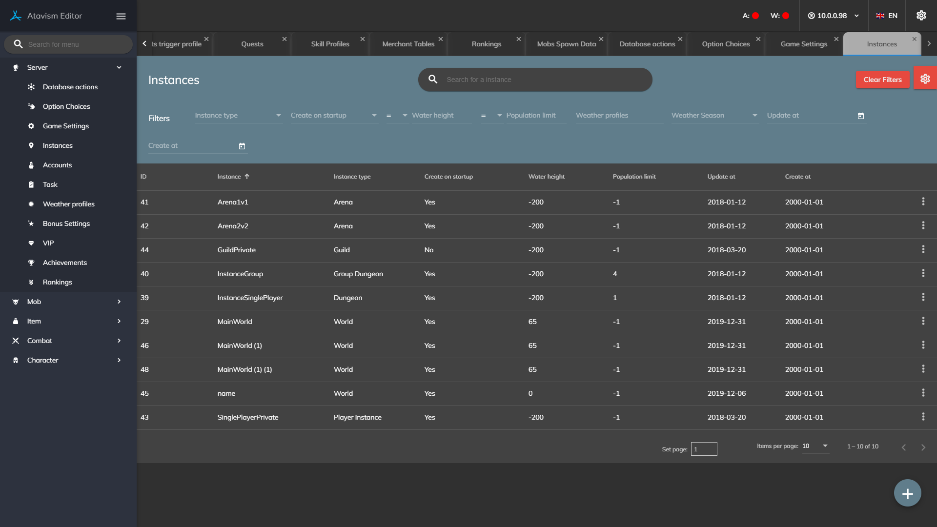 Create on Startup: Define that the instance will be created when the server starts. Important Note: For all World type instances this option should be selected