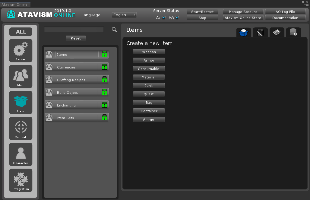 Some are just for logical categories like material, consumable, junk, or quest, they all share the same attributes, but there are also very specific elements like Weapons that have additional attributes like a subtype of weapon (axe, sword, staff, bow, etc.).