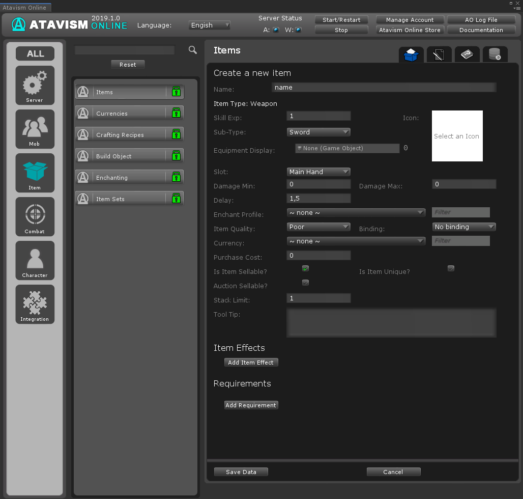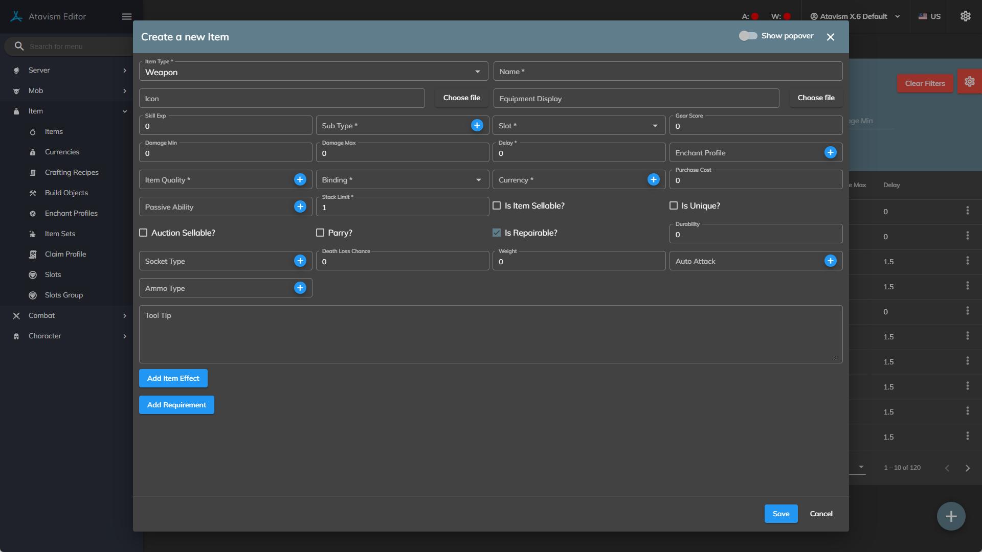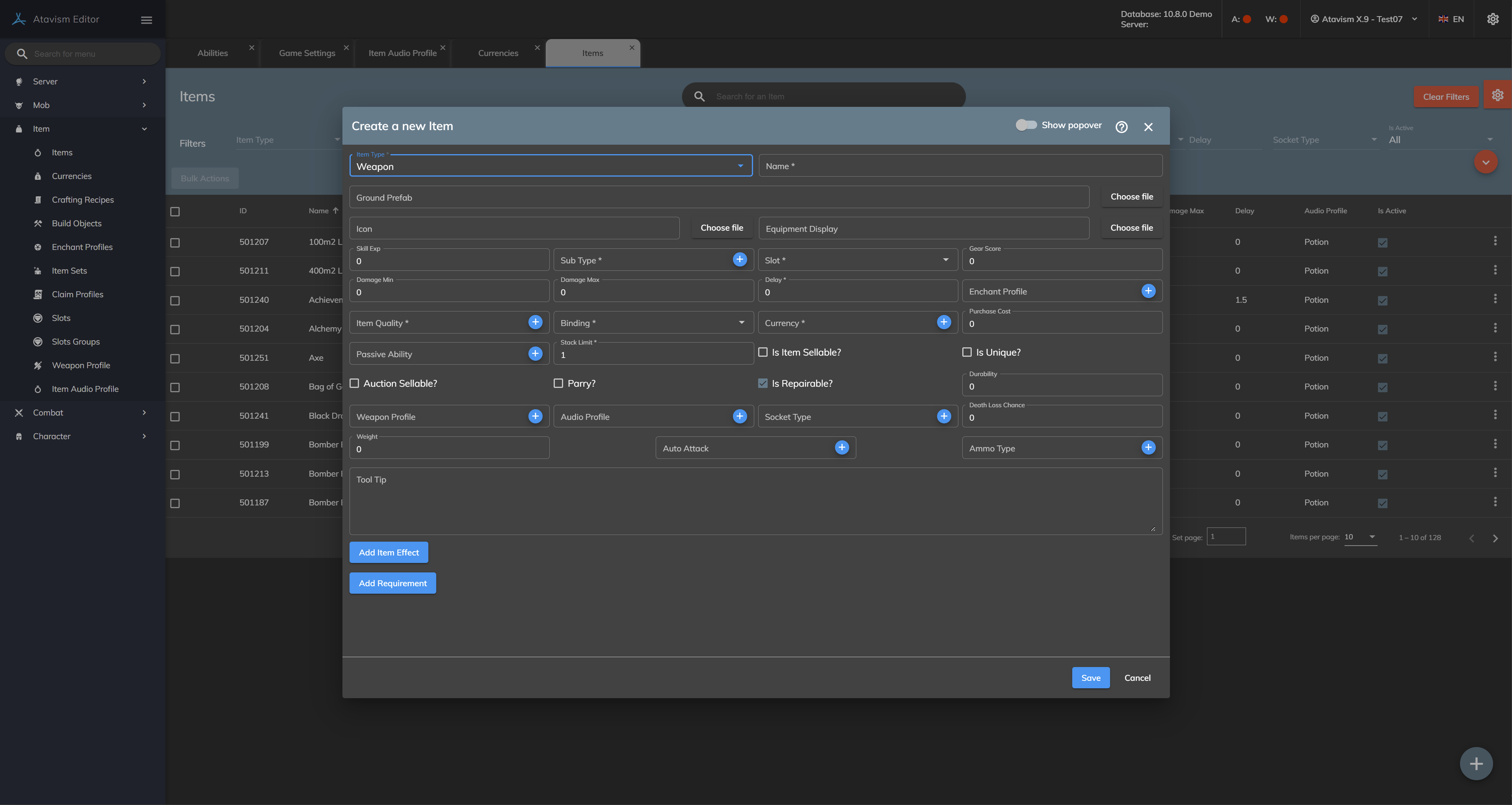 Weight: Defines how much weight that item has. Weight is a stat of vitality type, where you can slow down a player if the Stat Threshold will be reached.