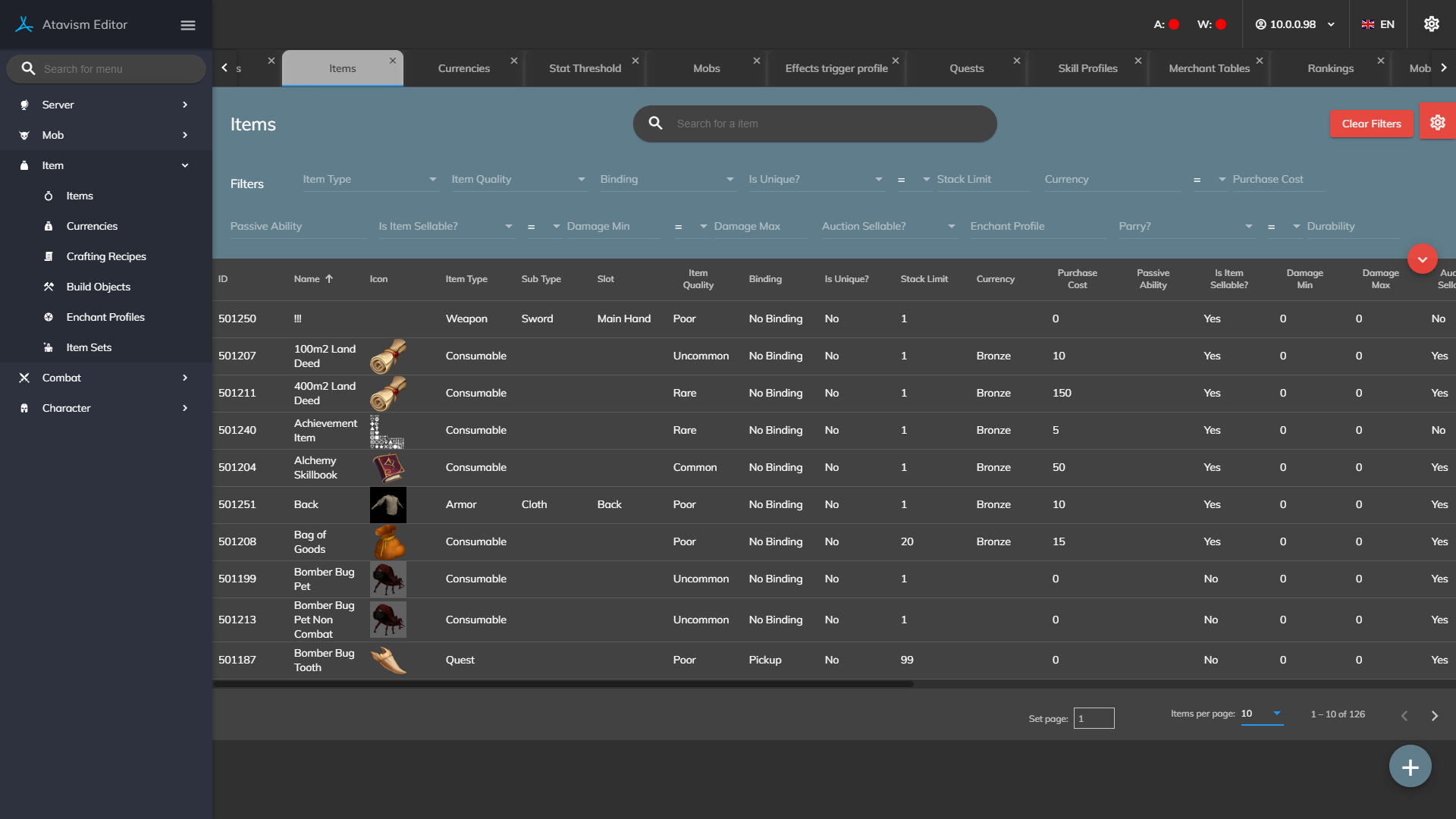 Finally, items are part of the merchants trade system, where you can define something we called merchant table, which contains items available for purchase for a player when he will talk with a merchant.
