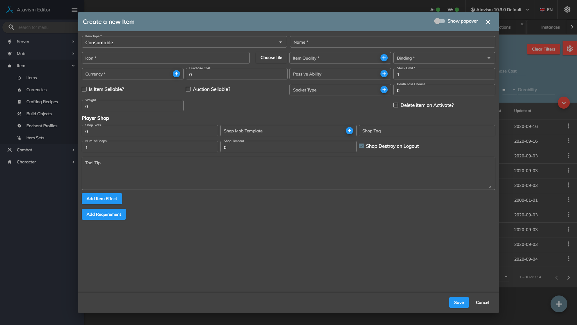 Shop Slots: Defines how many items the player can put into the player shop. If it’s set to 0, then the item won’t behave as a shop.