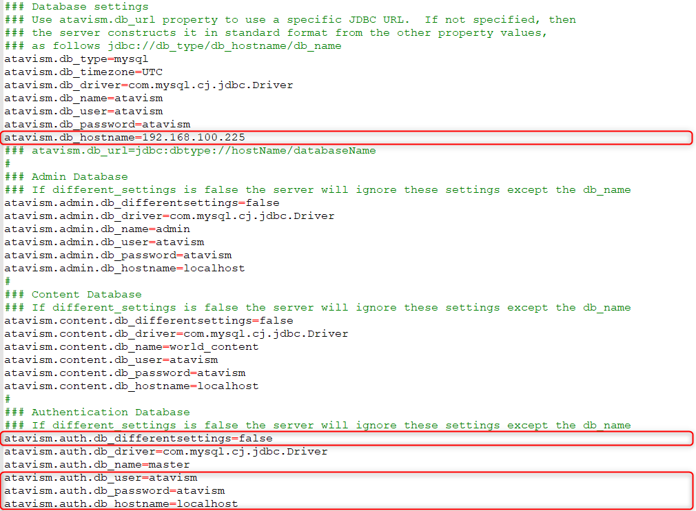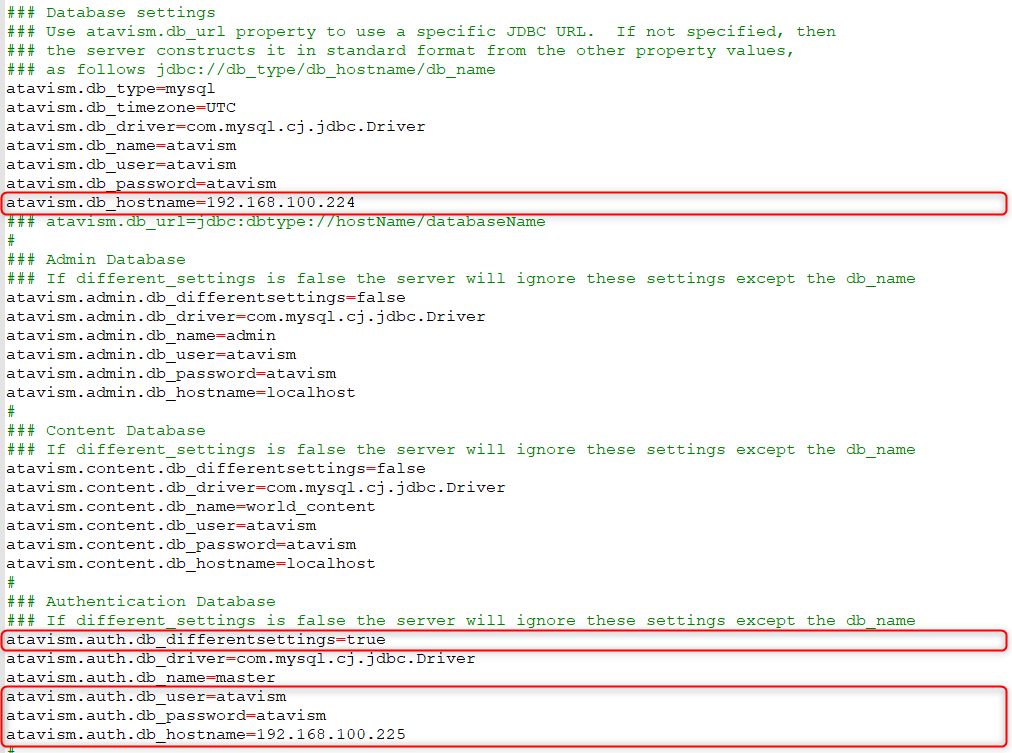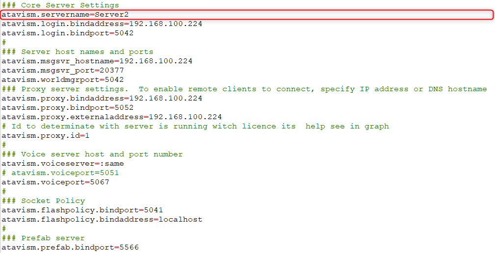 - Modify the world.properties configuration file on both servers where you will have to set atavism.servername=YourServerNameOfYourChoice and master database hostname and credentials, like on the screenshots below