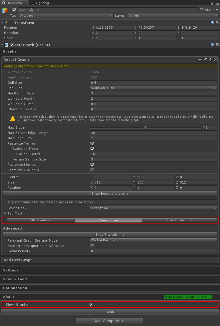 - Tick the ASTAR_RECAST_LARGER_TILES option and click the Apply button