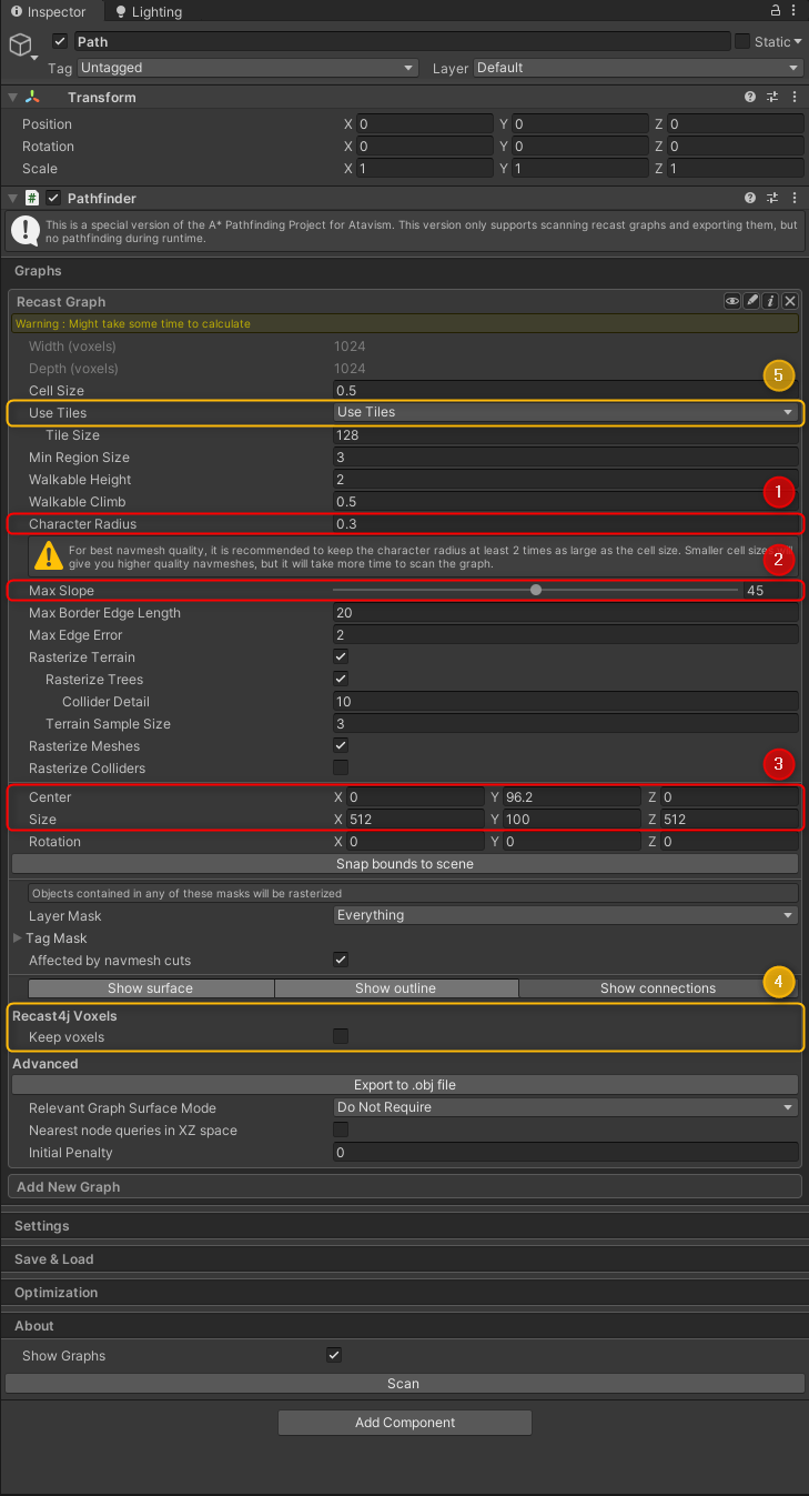- The rest of the options are depending on your use case, but for example for the MainWorld map which is delivered within the Atavism package, parameters that worked best for us are