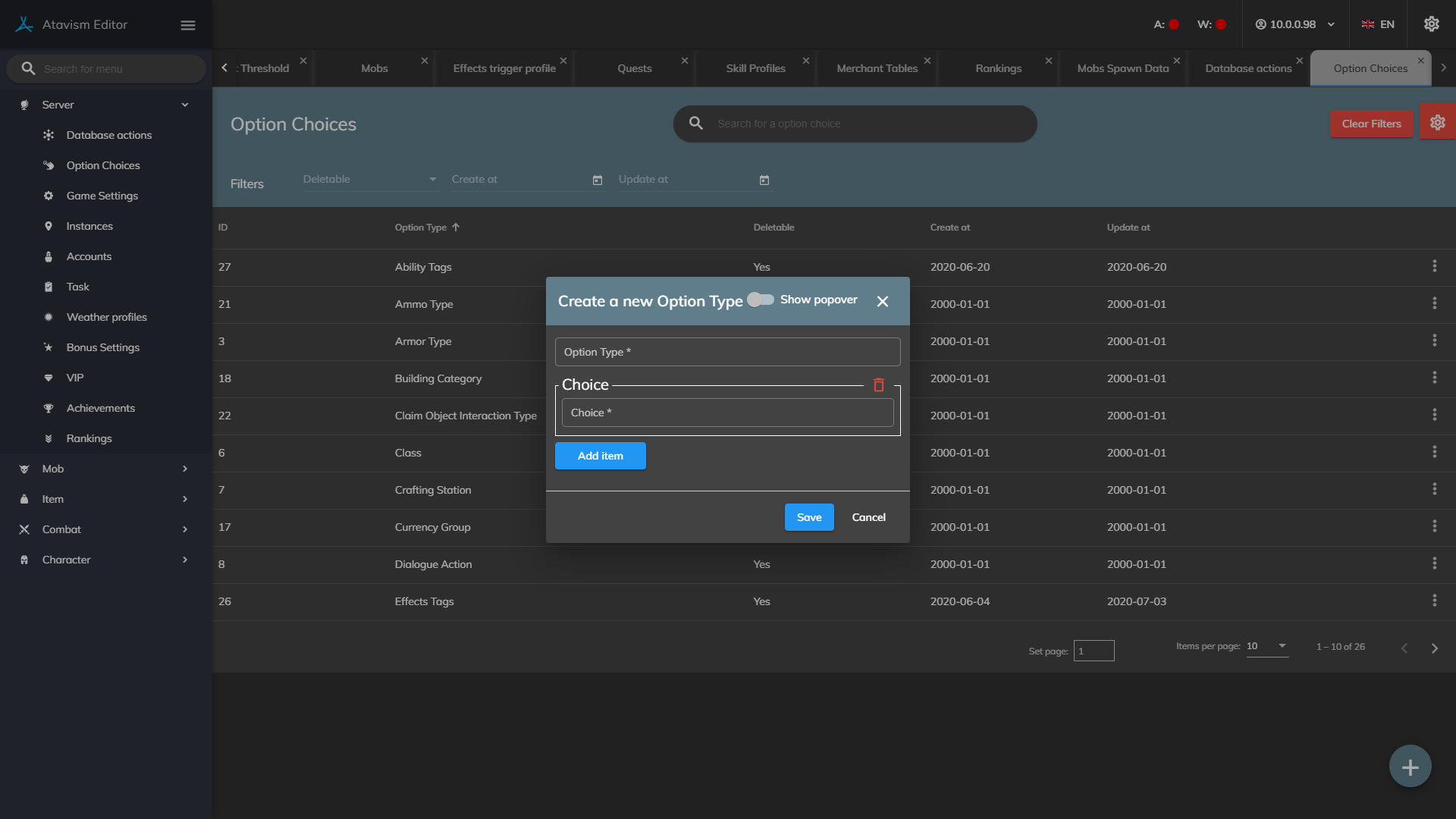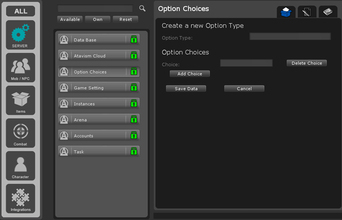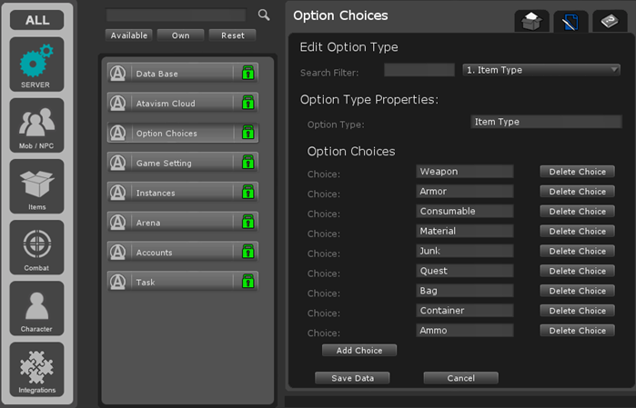 This plugin allows you to change options fields for other plugins, for instance when you create a weapon you have a drop-down list of types of weapons to choose from. In this plugin you can edit that list to your own names so the dropdowns in plugins are customized for you: