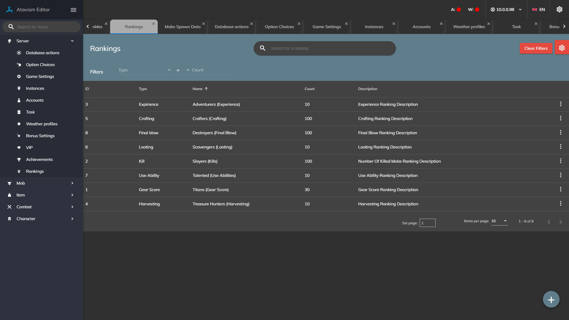 - RANKING_CALCULATION_INTERVAL defines the interval between rankings calculations from the server startup. The default value is 1440 minutes