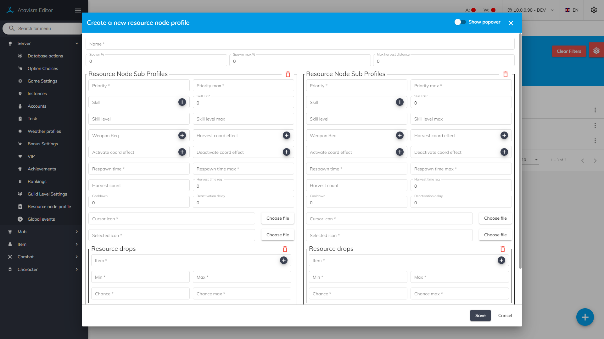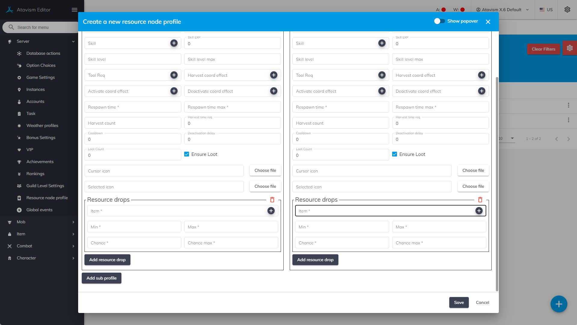 Profile: Defines Resource Node Profile created in the Atavism Standalone Editor
