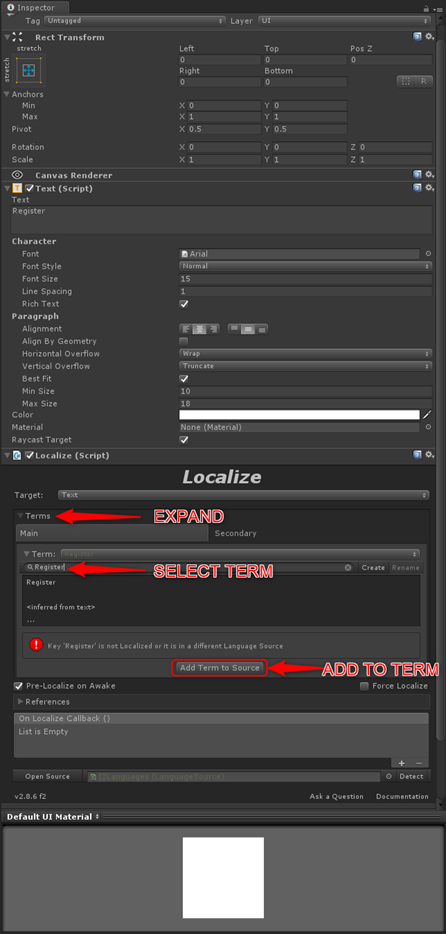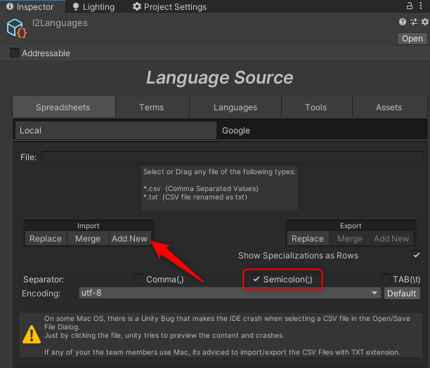 In case you would want a more advanced configuration like google spreadsheets, please read the author’s documentation page: http://inter-illusion.com/assets/I2LocalizationManual/Features.html