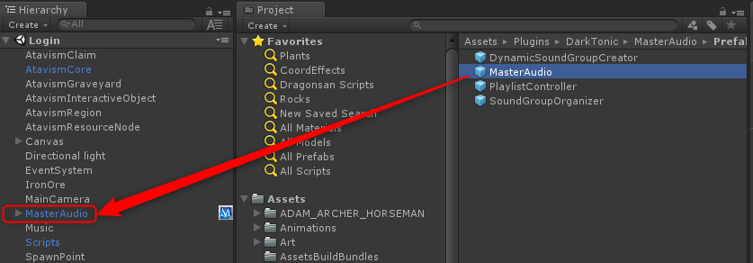 Basically, all you have to do is drag MasterAduio Prefab to your Login Scene: