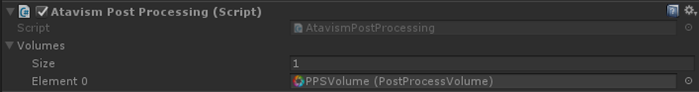 Then one last thing left. On the MainCamera object you should have AtavismPostProcessing component and in the Volumes put define an array with Volumes which you want to take into account