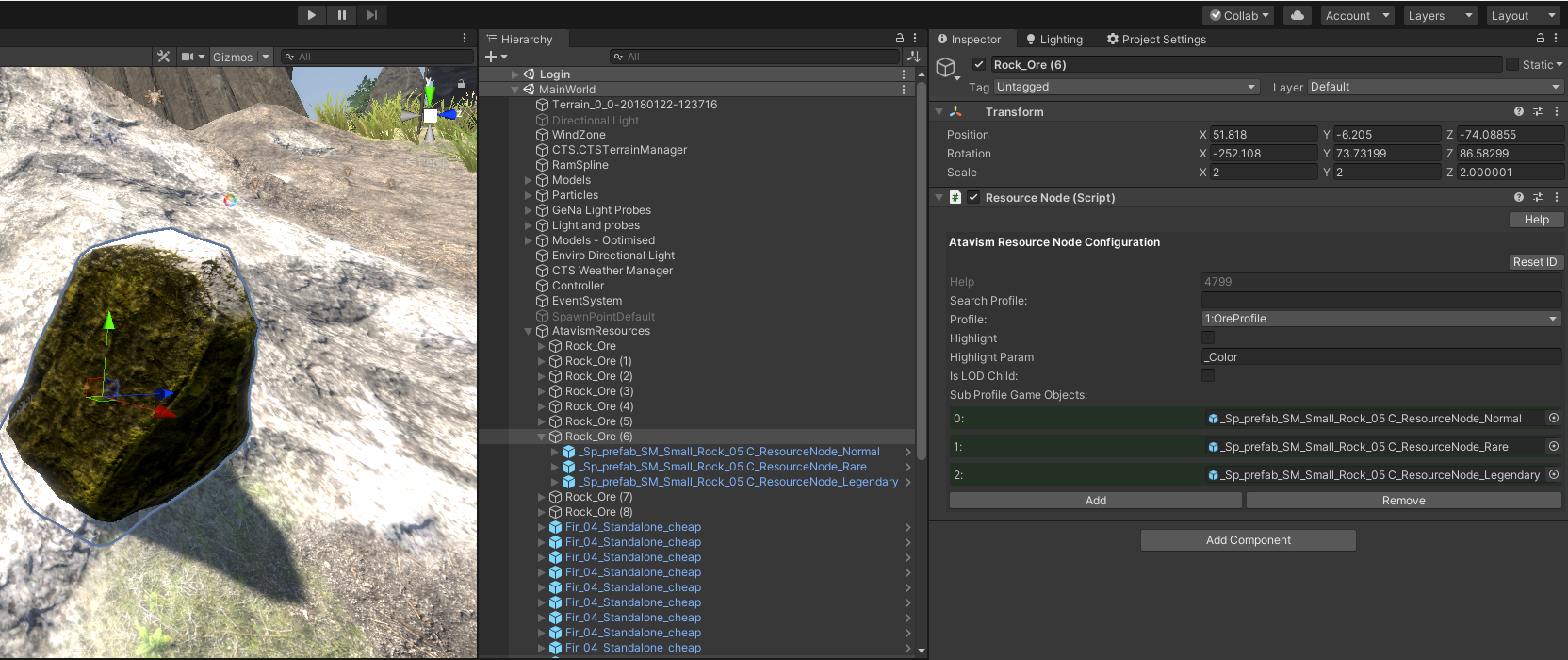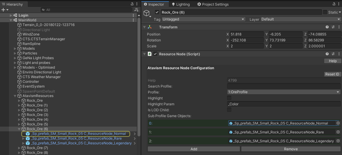 Resource Nodes are set up in the Unity Editor then saved to the Content Database with the Atavism Editor.