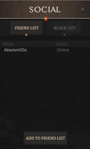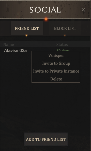 If you will want to block another player from receiving whispers or group invitations, etc. you can add him/her to the block list, by switching to the block list in the top section of the window.
