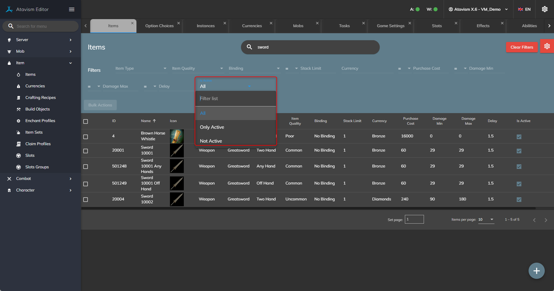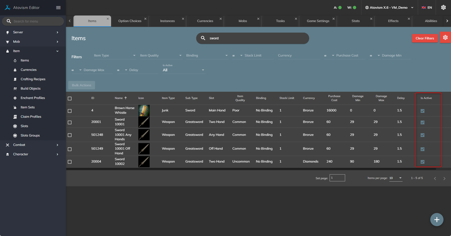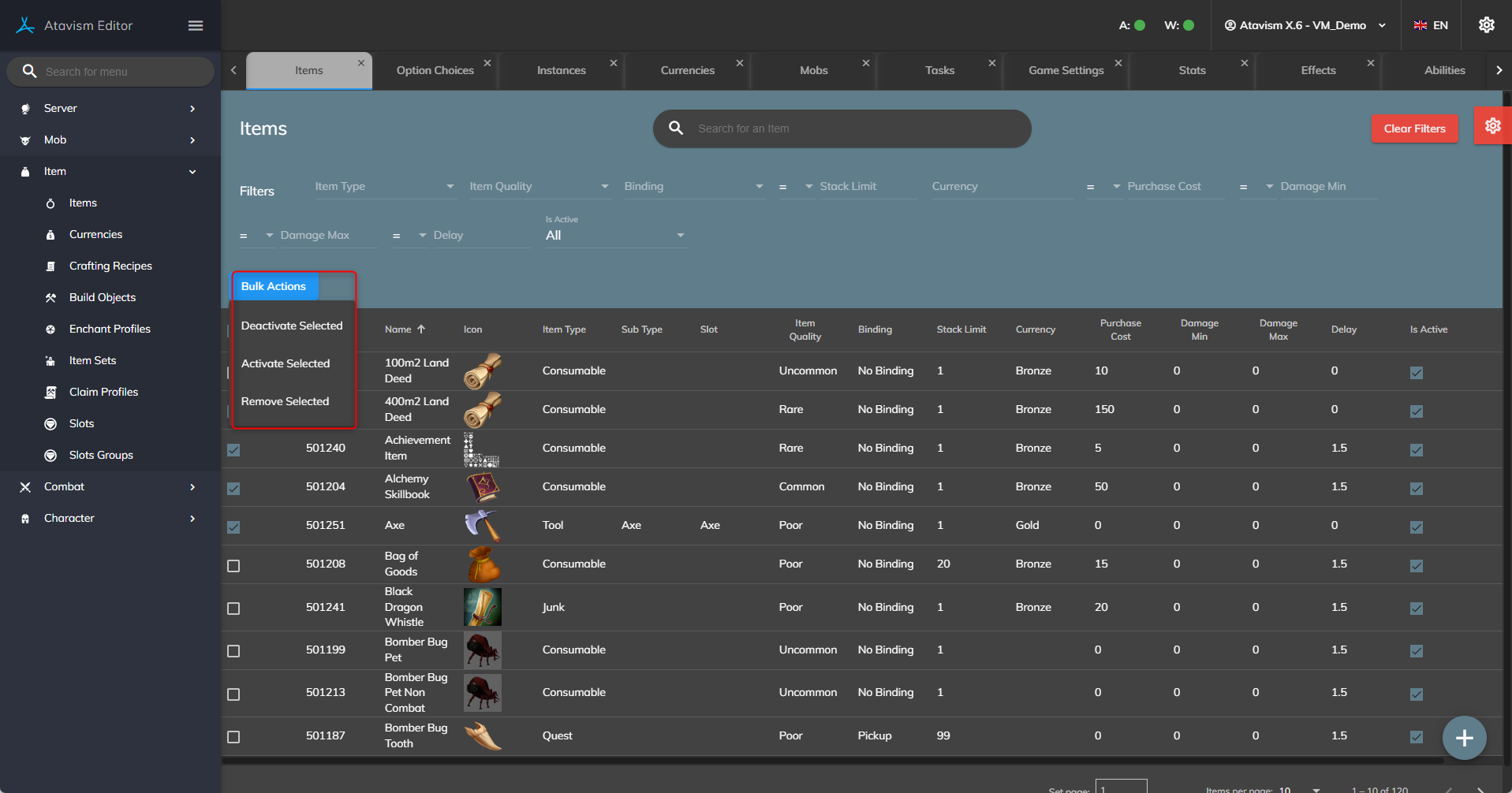 - Fixed issue with deactivation for items.