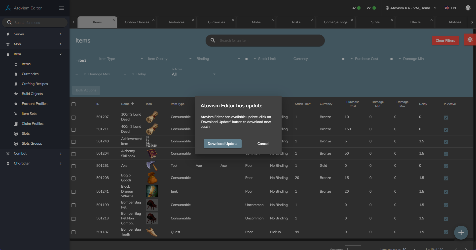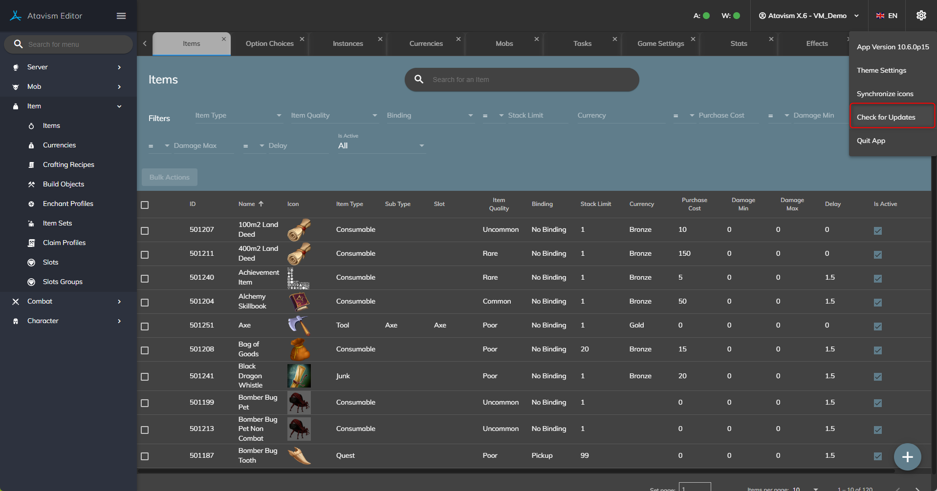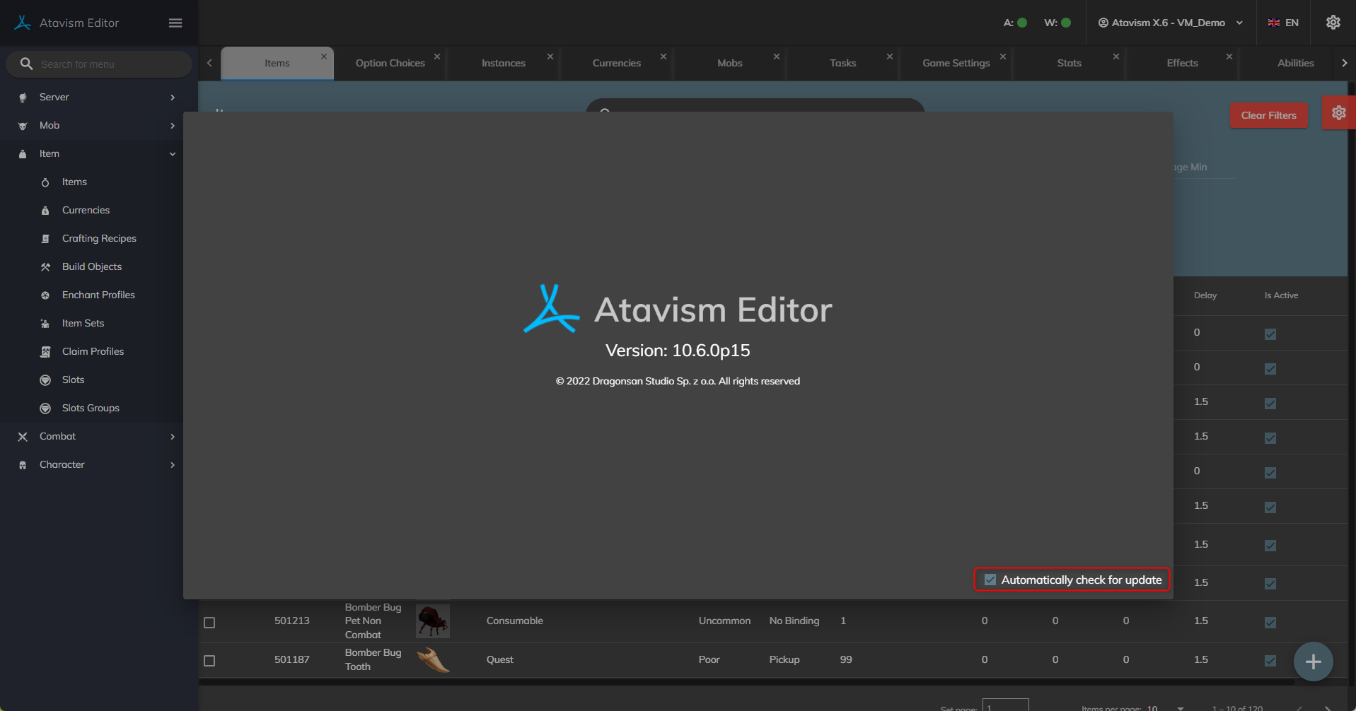 - Added option where Atavism Standalone Editor will check for updates and display information if any update is available.