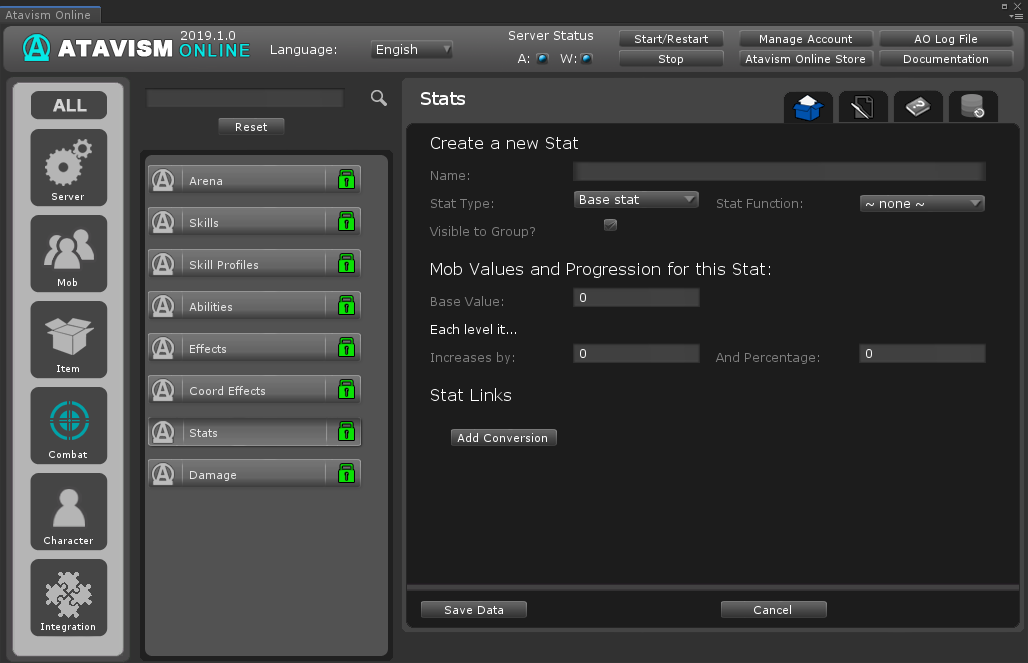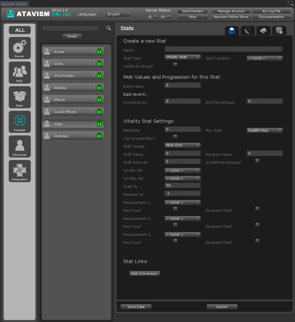 Name: The name of the stat. Only set these at the start, changing them later in development can cause issues.
