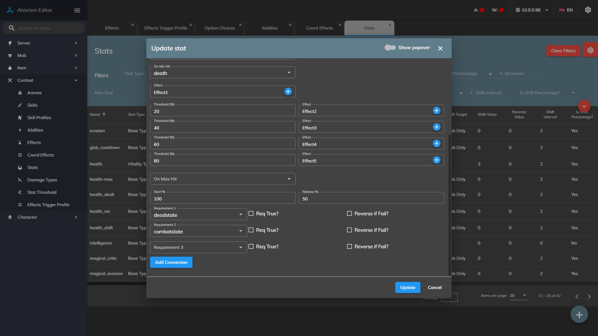 Requirement: What state the player/mob must have for this stat to update on the Shift Interval.