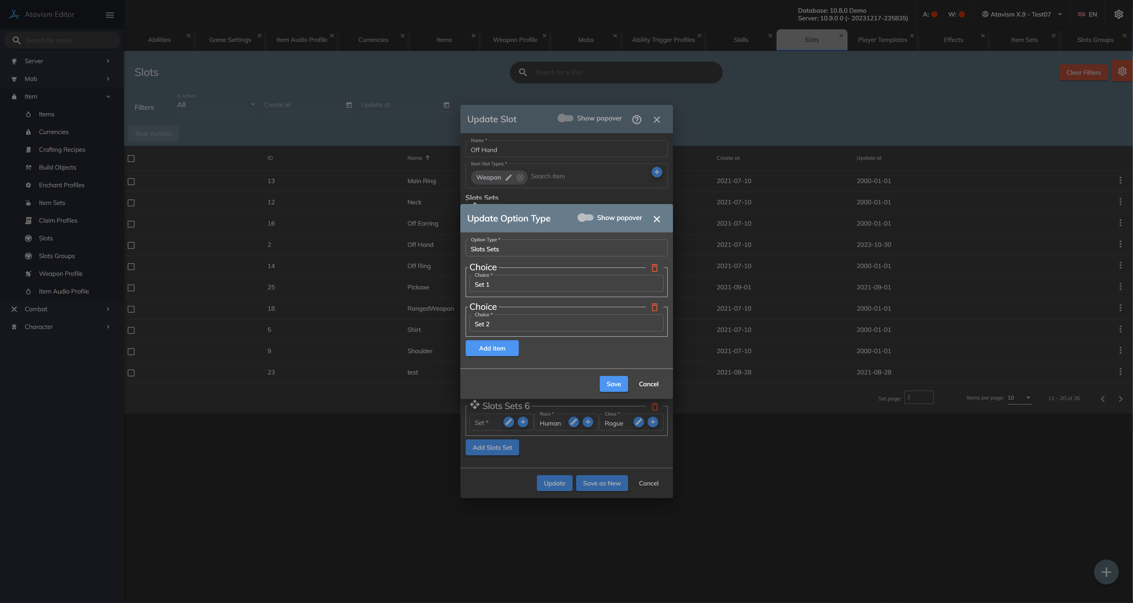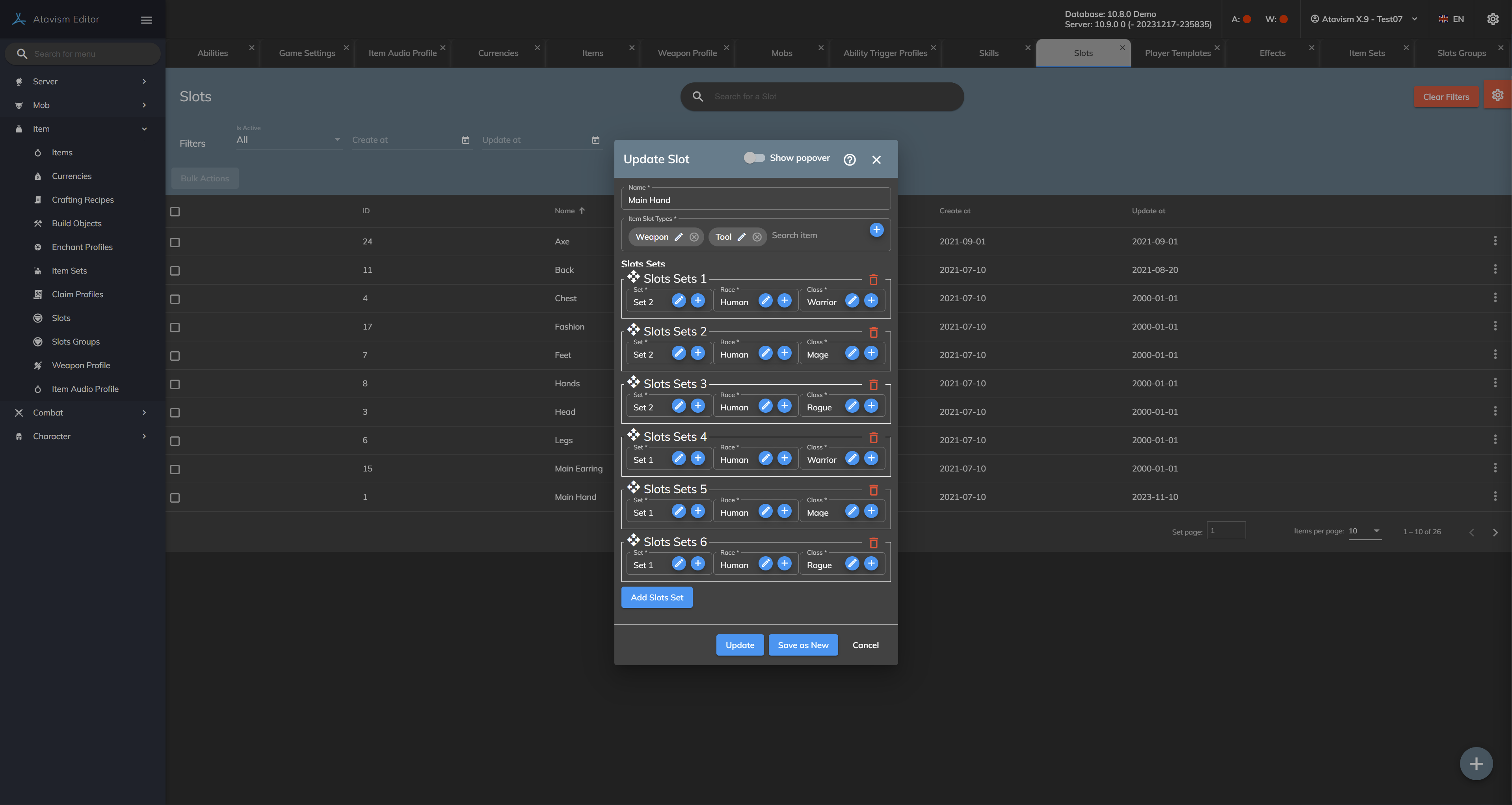 This means that a set with the name Set 2 is available for Race Human and 3 classes as well a set with the name Set 1 is also available for all 3 classes and Human race. The set will be part of the MainHand slot.