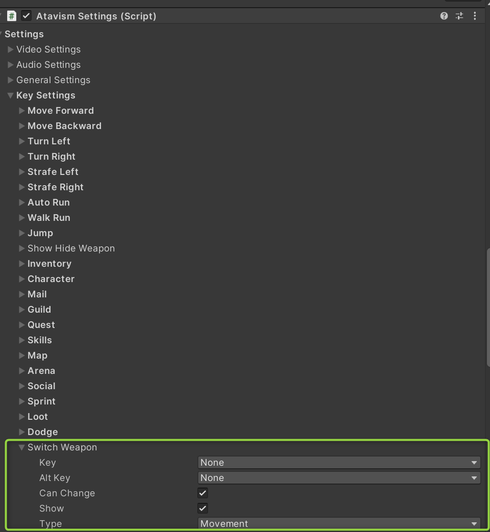 Atavism 10.9 comes with an additional feature where you can define multiple swappable weapon sets with slots where you can put your weapons and switch them in the game.