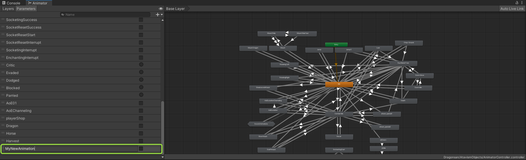 - Open the default controller used for your player which is located in the Assets/Dragonsan/AtavismObjects/AnimationController