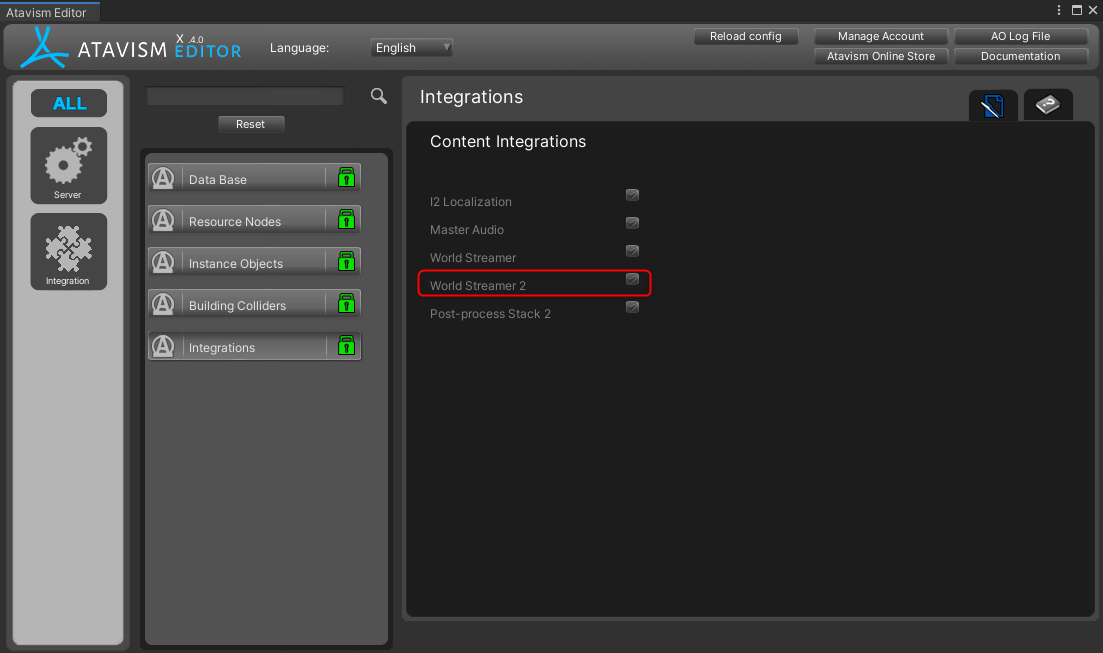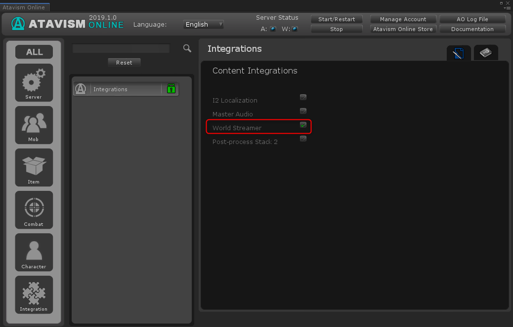 - Tick World Streamer 2 integration checkbox in the Atavism Editor.